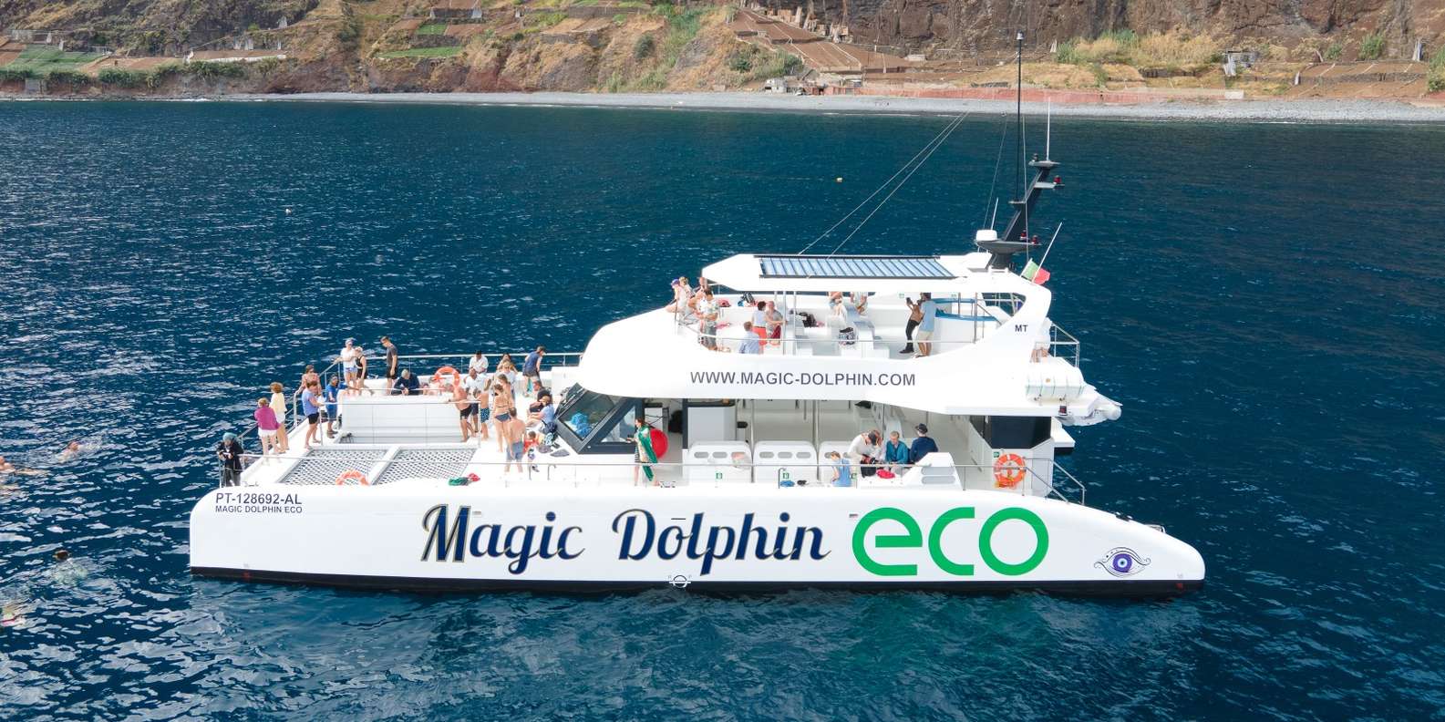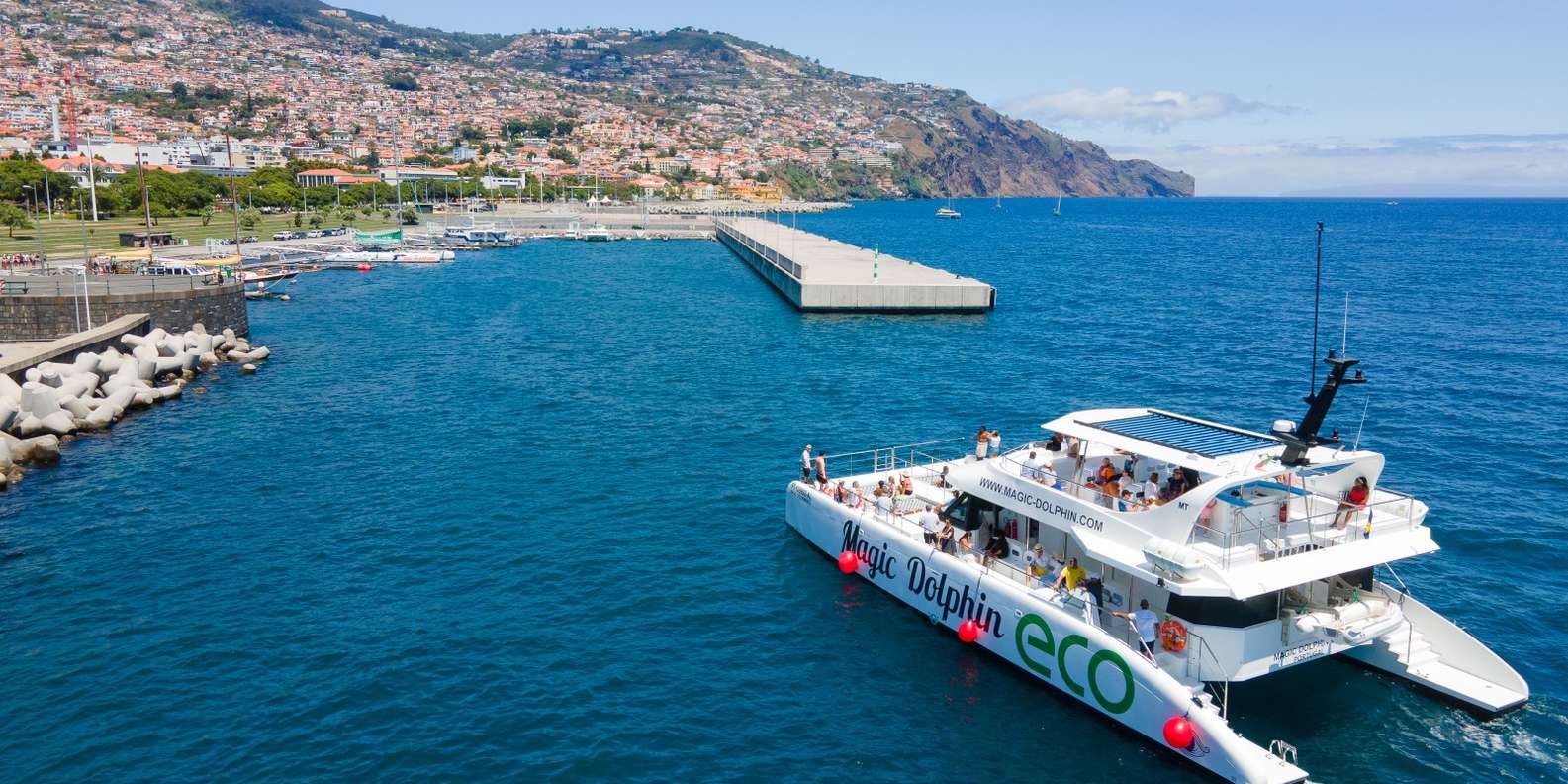Die Magic Dolphin Eco ist der einzige speziell für die Delfin- und Walbeobachtung gebaute Katamaran der Insel Madeira mit Hybrid-Elektroantrieb. Er wurde speziell entwickelt, um unseren Passagieren eine sichere, komfortable und außergewöhnliche Tour zu garantieren. Die Hybrid-Elektro-Motoren reduzieren den Lärm und die Emissionen, was nicht nur für unsere Gäste, sondern auch für unsere geliebten Wale das beste Erlebnis ist!