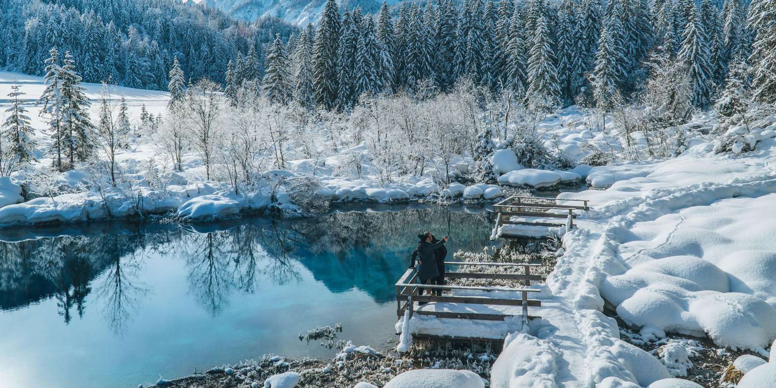 Entdecke die Magie der slowenischen Alpen – eine friedliche, authentische Welt, in der verschneite Wälder, kristallklare Seen und bezaubernde Bergdörfer eine märchenhafte Atmosphäre schaffen.