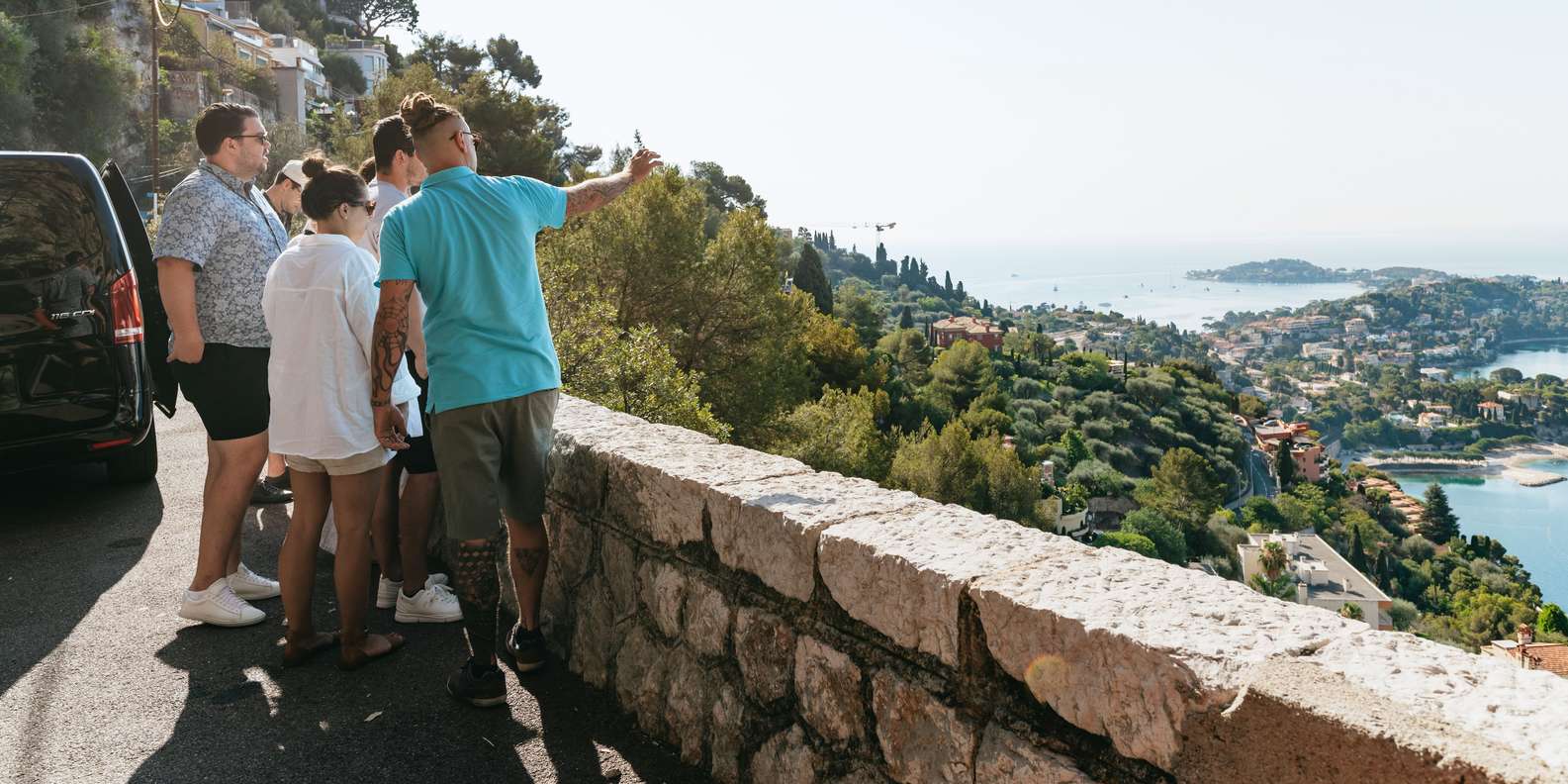 Du wirst zwischen 8:10 Uhr und 8:45 Uhr von deinem Hotel oder einem anderen Ort in Nizza abgeholt. Beginne deinen Abenteuertag mit einem 15-minütigen Besuch der "Moyenne Corniche". Genieße den Panoramablick auf den Hafen von Villefranche-sur-Mer und Saint-Jean-Cap-Ferrat.