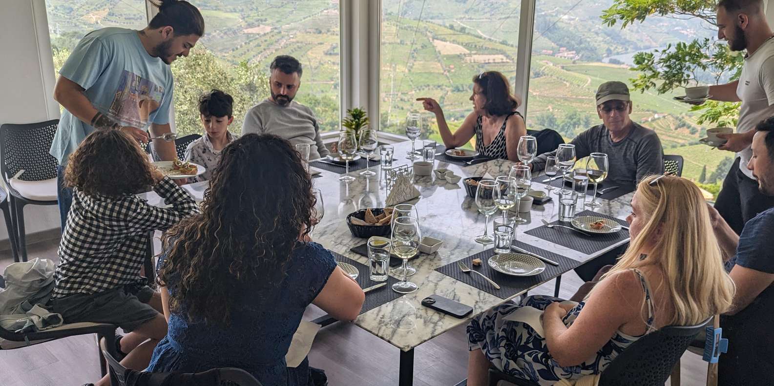 Wir genießen ein Mittagessen oder einen Brunch (je nach Wahl) vom Bauernhof direkt auf den Tisch mit Weinverkostung, bei dem du alle Köstlichkeiten der traditionellen Küche des Douro-Tals in einem unvergesslichen Mittagessen in einem vollklimatisierten Raum mit bester Aussicht auf den Douro genießen kannst. Außerdem machen wir etwas, das weltweit einzigartig ist: Wir öffnen eine Flasche Vintage-Portwein mit Feuer durch einen zertifizierten Sommelier.