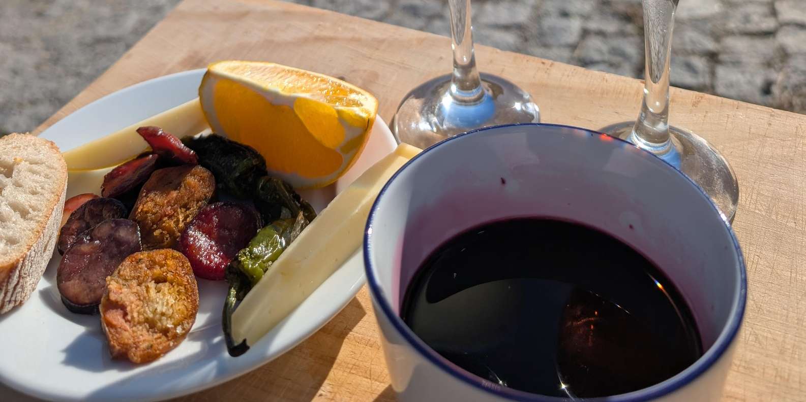 Unsere Idee ist es, dass du etwas über Wein lernst, aber nicht auf langweilige Weise, sondern auf unterhaltsame Art und Weise, immer mit einem Glas Wein in der Hand und guten traditionellen Speisen zum Probieren. Das Erlebnis beginnt auf unserem Weingut in der demarkierten Region Vinhos Verdes mit unserem Frühstück mit traditionell geräuchertem Fleisch, Käse, traditionellem Brot und anderen Beilagen, begleitet von den berühmten Vinhos Verdes (Weiß, Rot und Espadal).