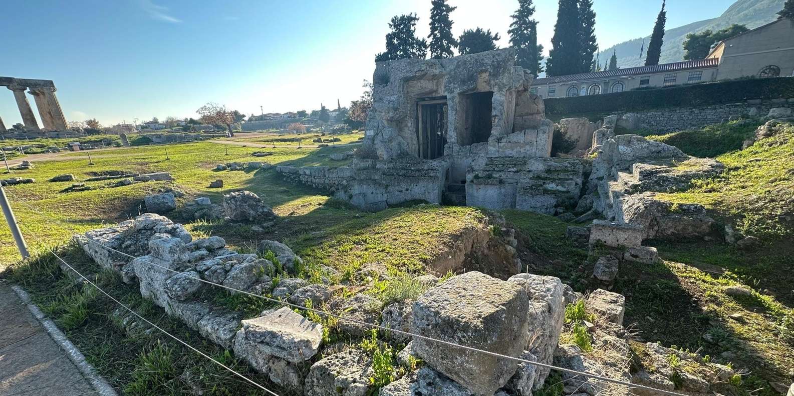 Entdeckt die unglaubliche archäologische Stätte des antiken Korinth, zu der ein fantastisches Museum, ein Innenhof, der Apollontempel, die Glauke-Quelle, die Heilige Quelle, Peirene, Asklepieion, Odeion, Bema, Agora und vieles mehr gehören.