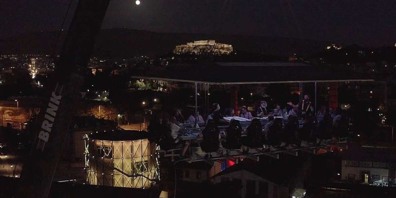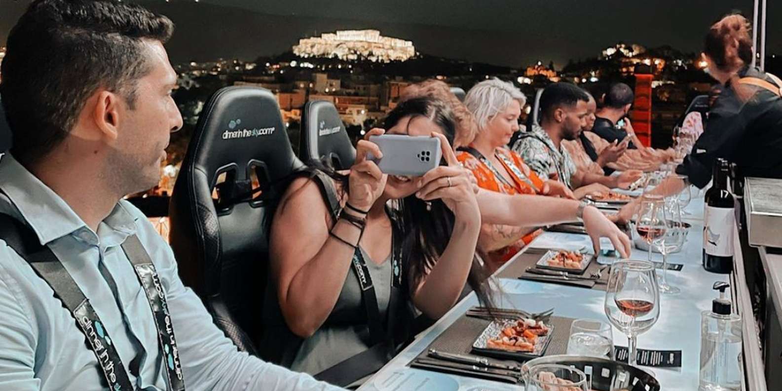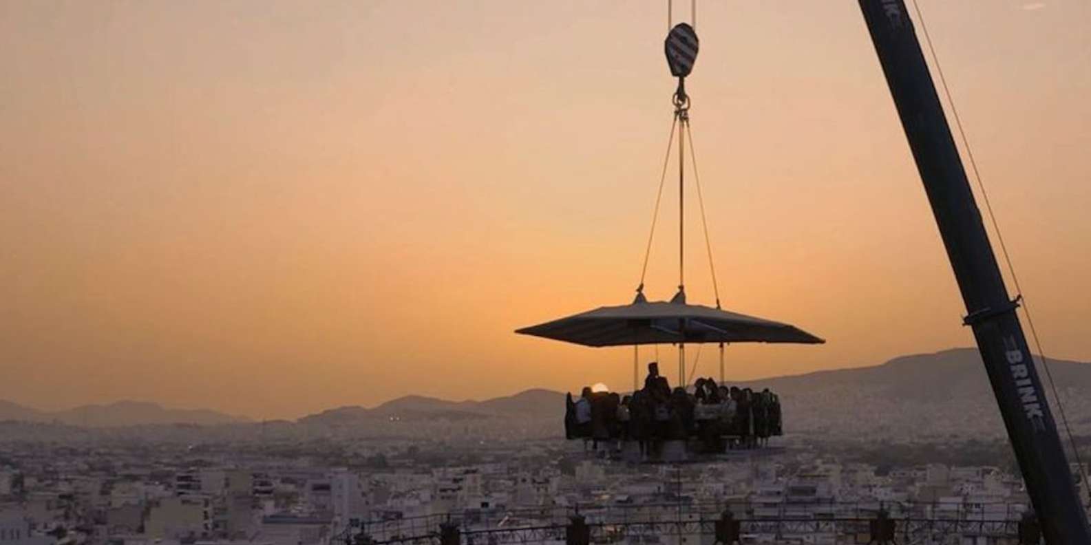 "Hebe deinen Abend mit einem unvergesslichen kulinarischen Abenteuer hoch über Athen auf. Diniere an einem Tisch, der 40 Meter in der Luft hängt, wo dir ein erfahrener Koch ein köstliches Vier-Gänge-Menü serviert