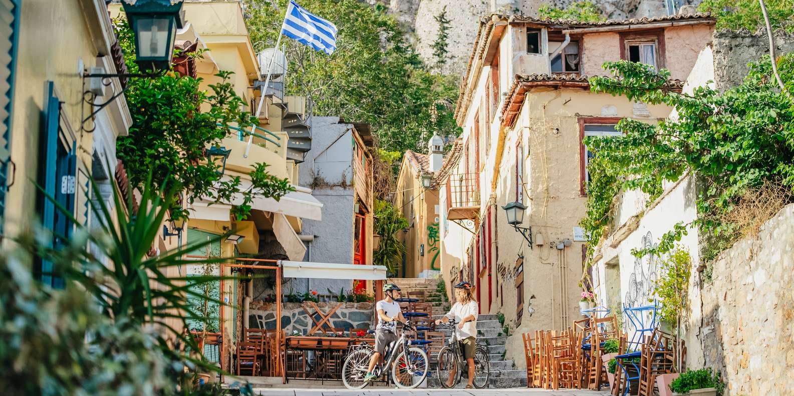 Begib dich auf eine Sightseeing-Tour durch das historische Zentrum von Athen - ganz einfach auf einem komfortablen E-Bike. Entdecke das traditionelle Viertel Thission und das trendige Viertel Plaka un