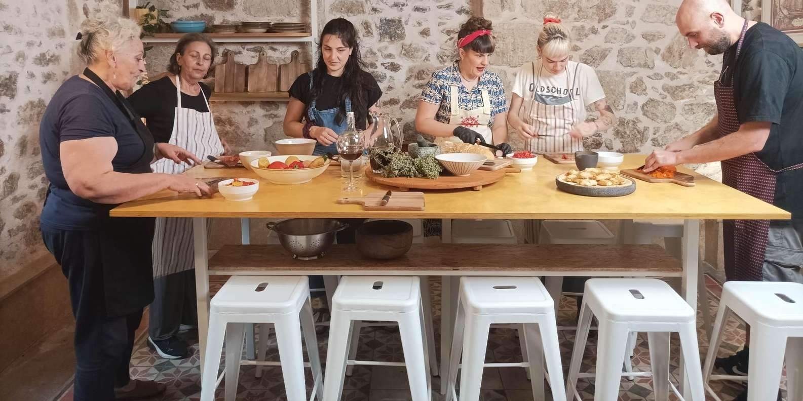 Entdecke die Geheimnisse der mediterranen Gastronomie bei einem Kochkurs im Kerameikos-Viertel von Athen. Du betrittst ein traditionelles Steinhaus, kochst 6 griechische Gerichte und isst anschließend im Garten.