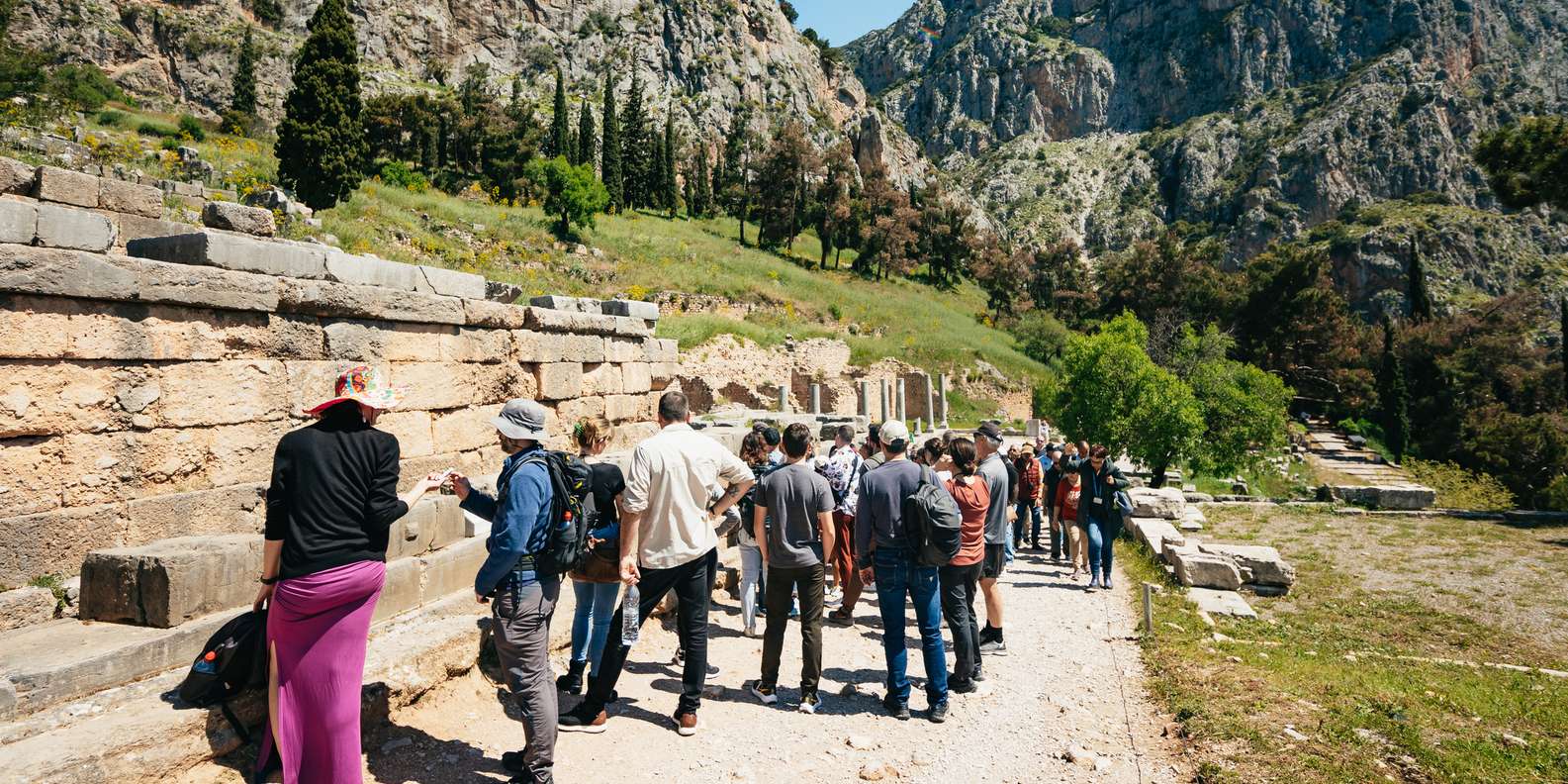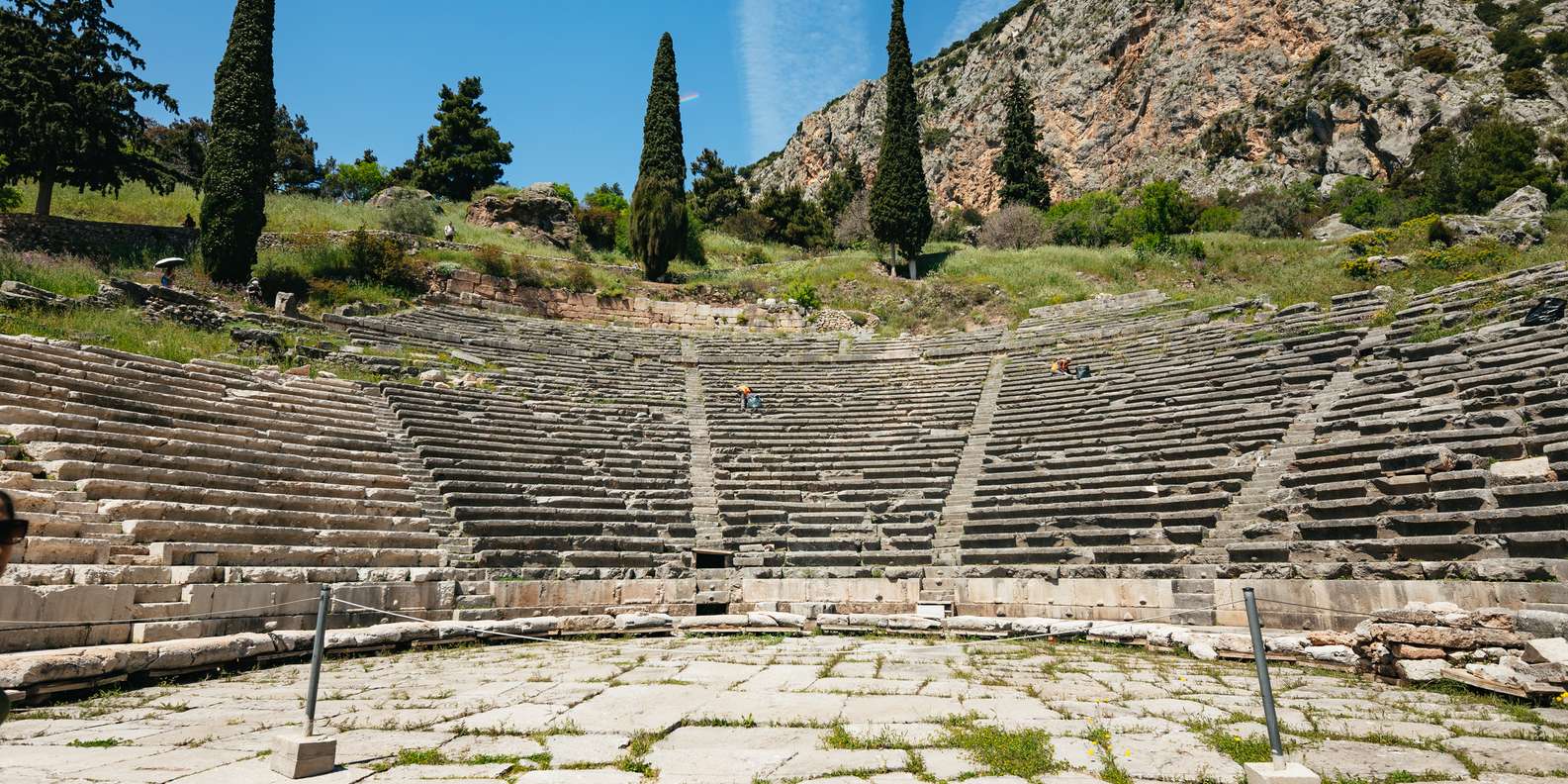 Leg eine entspannende Kaffeepause ein in Livadia, bevor du schließlich in Delphi ankommst. Gleich nach der Ankunft erkundest du das Theater und kannst die Aussicht auf die umliegenden Berge genießen. Betritt den Tempel des Apollon, erhalte Einblicke in die Welt der alten Griechen und erfahre mehr über gängige Rituale der Antike.
