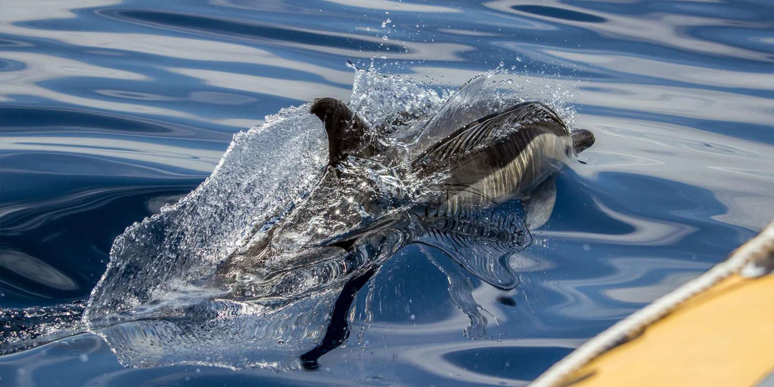 Folgen Sie dem Guide und dem Skipper zu Ihrem Boot und fahren Sie aufs Meer hinaus. Unser Ausguck an Land wird unsere Freunde ausfindig machen und Ihnen über UKW-Funk die Richtung mitteilen, in die Ihr schnelles Zodiac-Boot zunächst mit hoher Geschwindigkeit fahren wird.