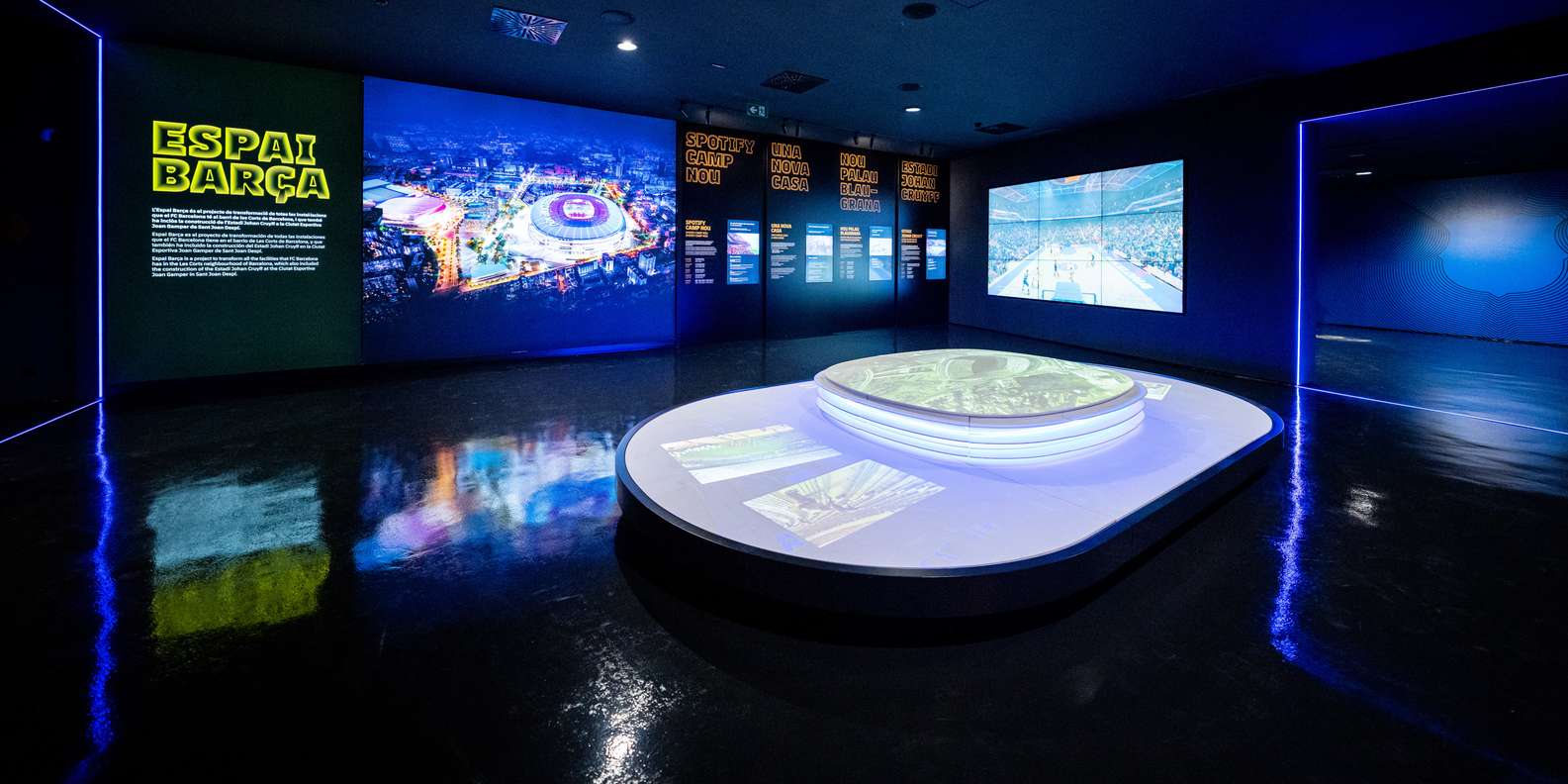 Erfahre mehr über die Zukunft des FC Barelona bei "Espai Barça", wo Modelle, Grafiken und anschauliche audiovisuelle Elemente die ausgeklügelten Details des neuen "Zuhauses" für alle Barça-Fans vorstellen.