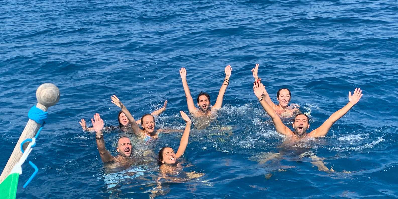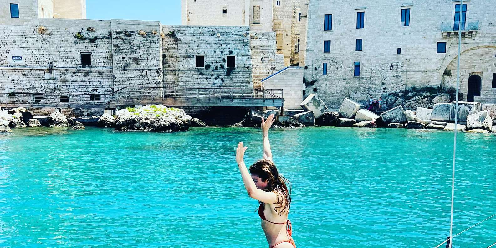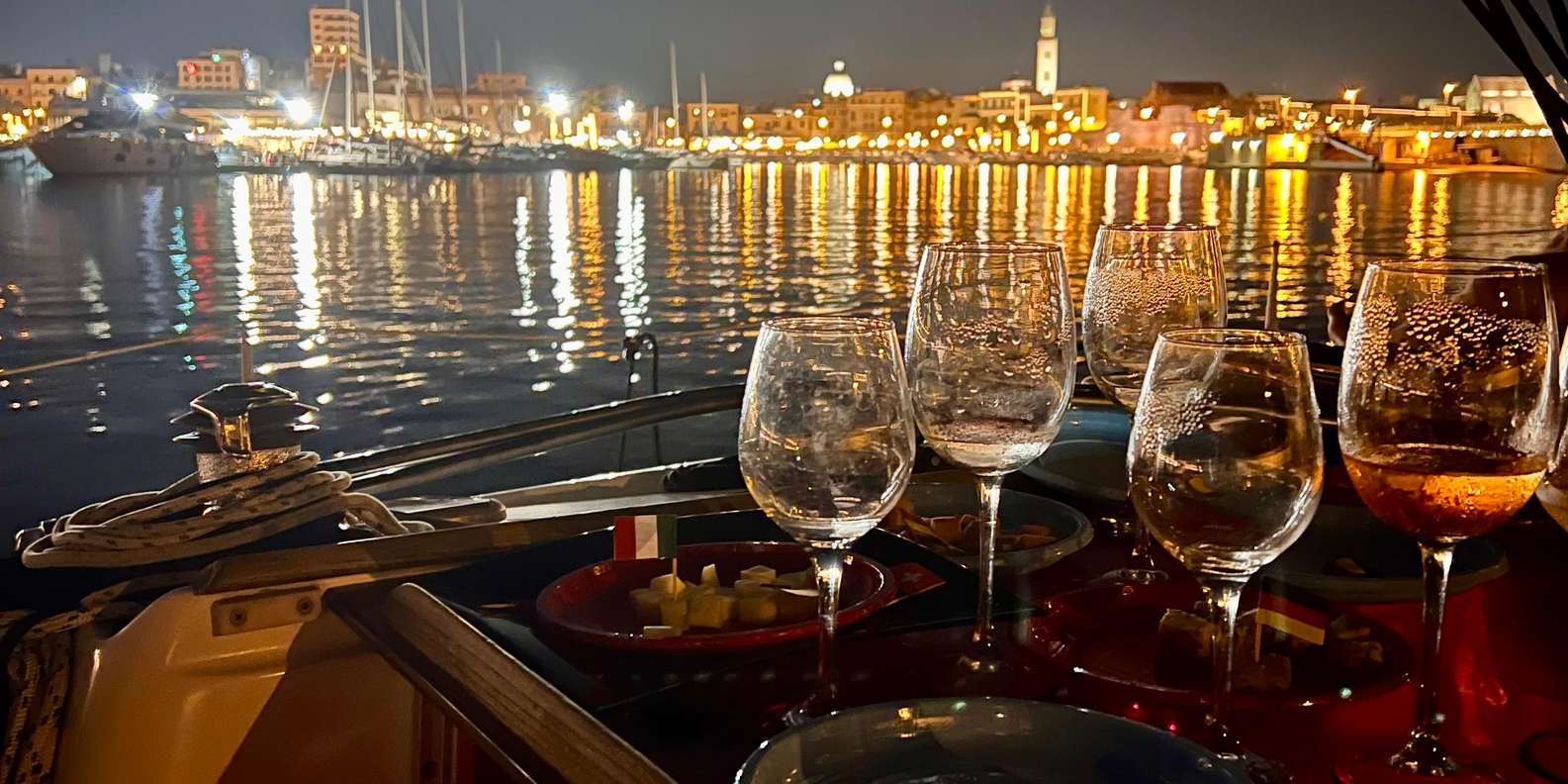 Wenn die Wetterbedingungen es zulassen, wird dein Skipper den Anker im alten Yachthafen von Bari auswerfen, wo du ein weiteres Mal schwimmen und Panoramafotos von der Strandpromenade, der wunderschönen Altstadt und der Basilika San Nicola machen kannst. Einen leckeren apulischen Imbiss und einen guten Wein darfst du dir nicht entgehen lassen. Wenn du dich entscheidest, die Tour bei Sonnenuntergang zu machen, wirst du von den Farben der Sonne fasziniert sein, die Himmel und Meer miteinander verbinden. Je nach Wetterbedingungen und deinen Schwimmfähigkeiten kannst du lustige Wasserspiele spielen. Der Skipper hat Spaß, wenn du Spaß hast!