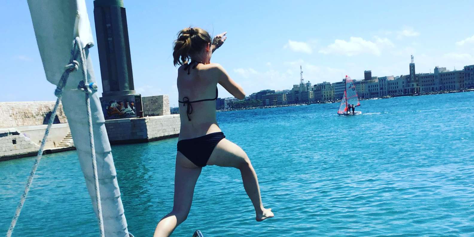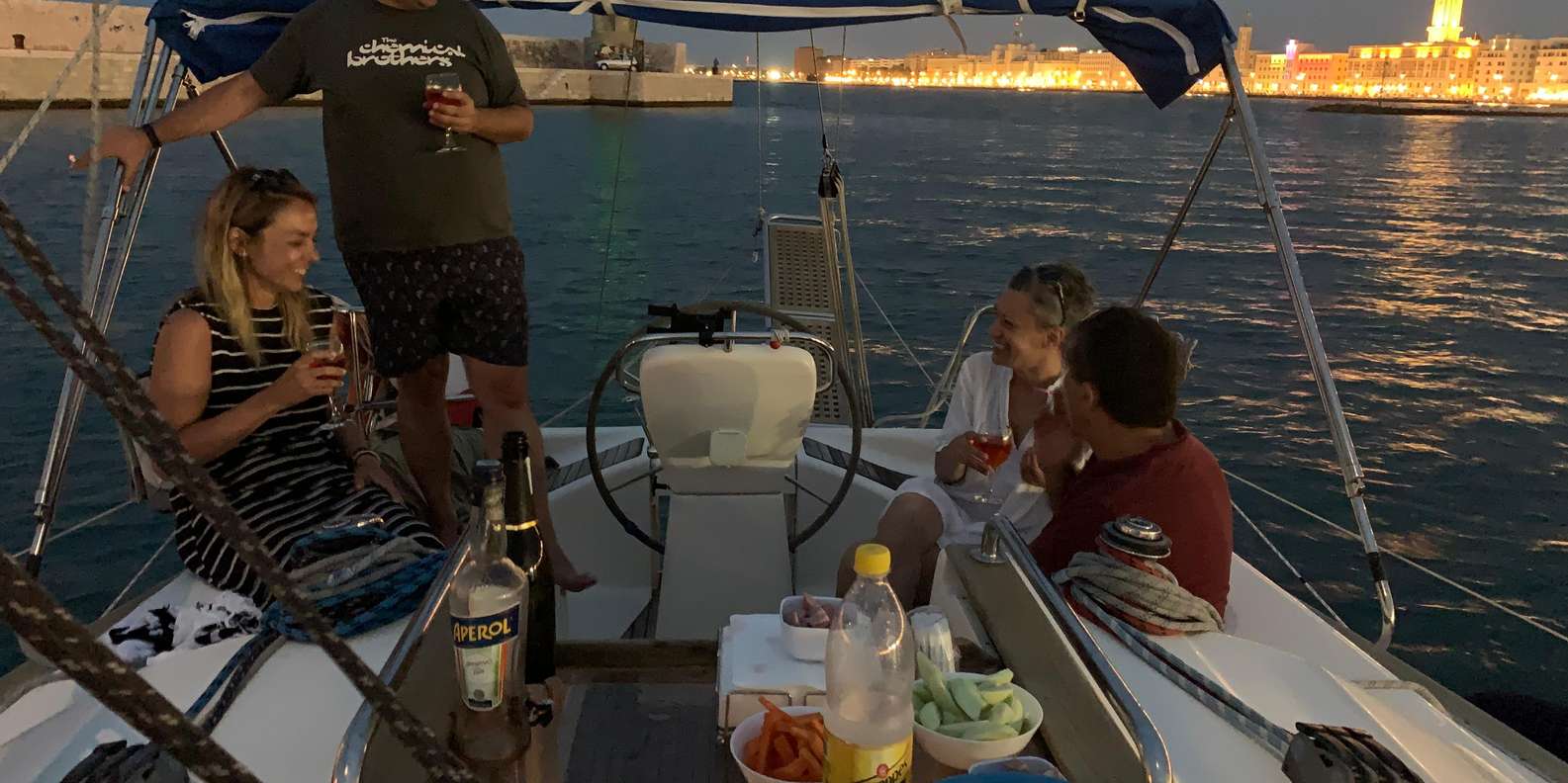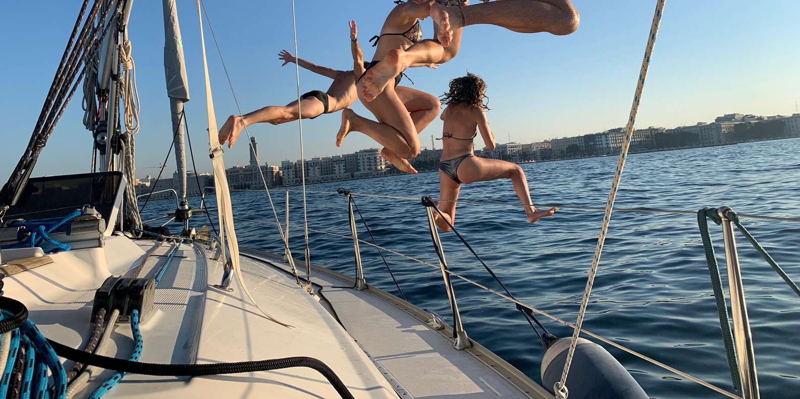 Dann ist es an der Zeit, 3 Stunden lang auf hoher See und entlang der apulischen Küste zu segeln.