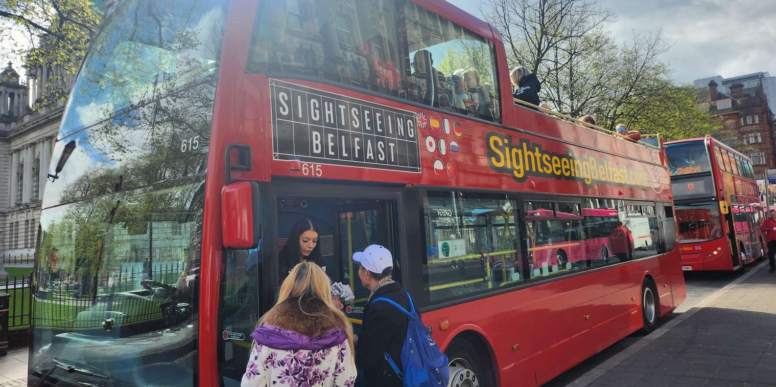 - Erkunde Belfast auf einer Hop-On/Hop-Off-Bustour mit einem offenen Sightseeing-Bus