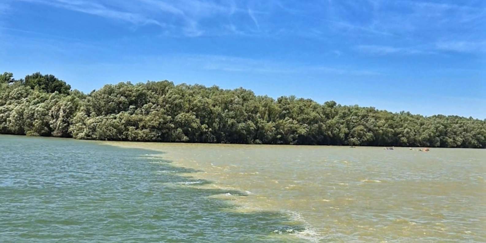- Sieh dir die Linie an, an der die Save und die Donau zusammentreffen, markiert durch ihre unterschiedliche Farbe.