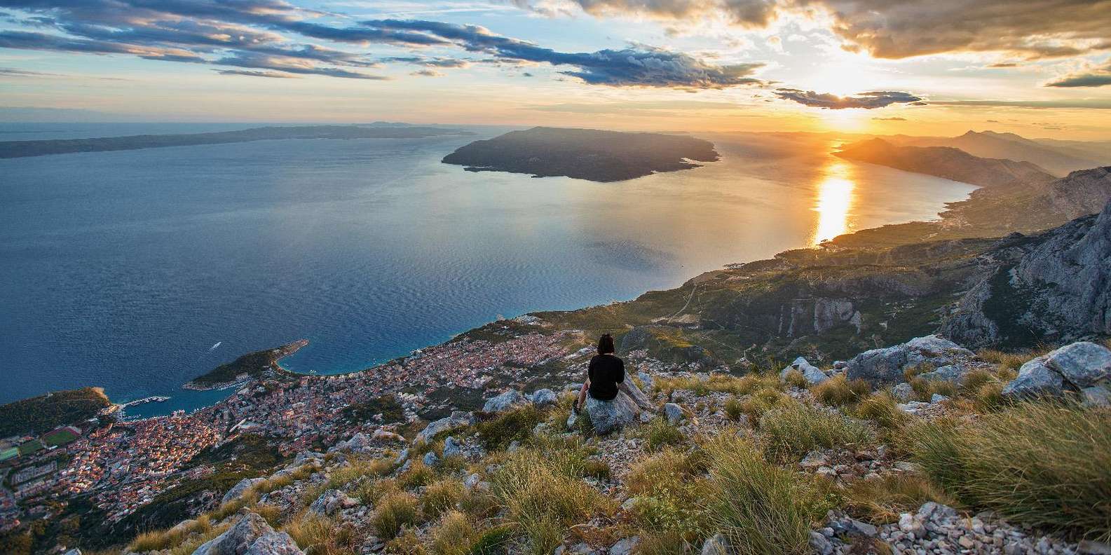 Beende den Abend mit einem postkartenwürdigen Blick auf den Sonnenuntergang über der Adria und genieße einen Schuss Rakija am Aussichtspunkt Podgora.
