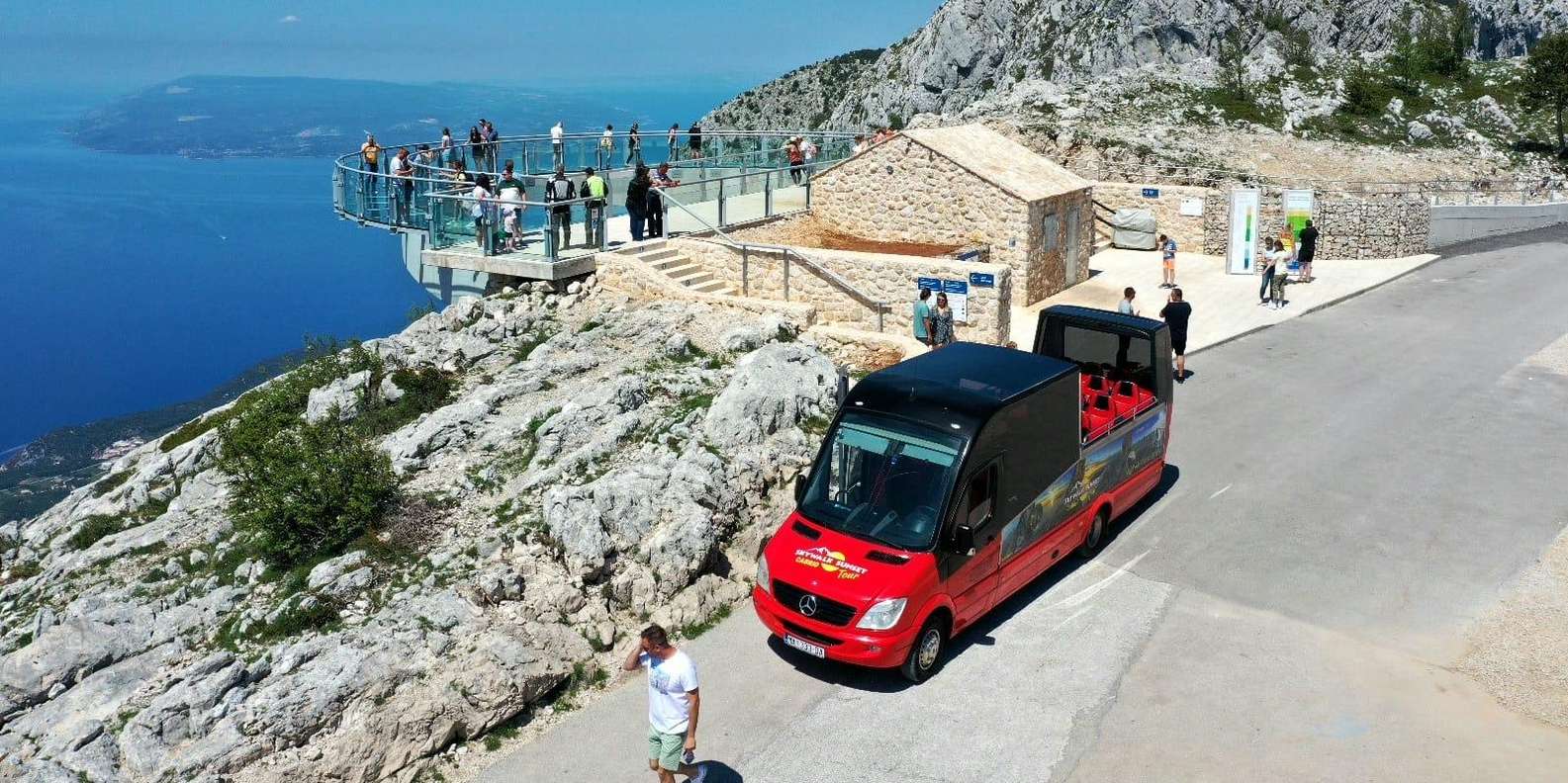Skywalk Biokovo mit dem Cabrio-Bus – atemberaubende Aussicht mit lokalem Touch. Morgendliche oder abendliche Touren durch das Herz Dalmatiens.