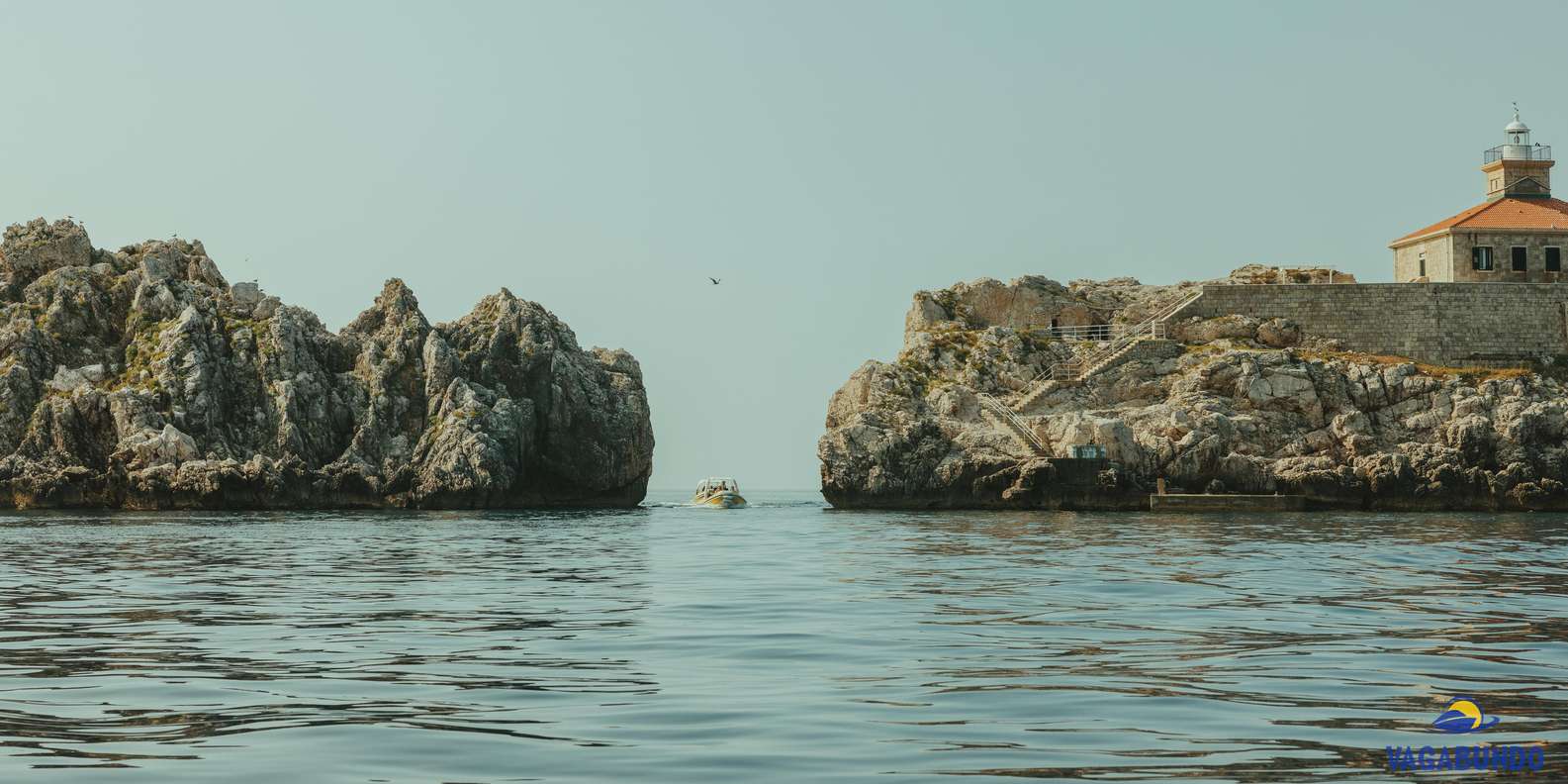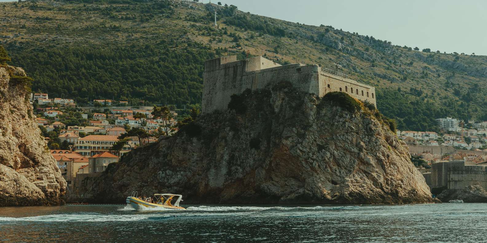 Beginne dein Abenteuer mit dem Schnellboot vom Hafen der Altstadt von Dubrovnik, direkt neben den berühmten Stadtmauern. Wenn du den Hafen verlässt, genießt du einen atemberaubenden Panorama-Ausblick auf die Altstadt vom Meer aus – ein perfekter Moment für Fotos und Sightseeing.