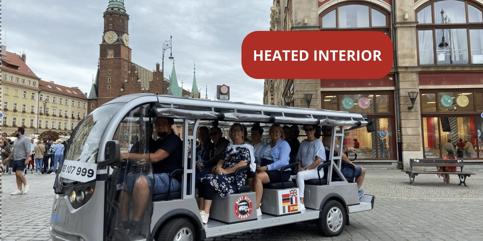 Entdecke die Schönheit von Breslau, während du mit einem Elektrofahrzeug reist, um die interessantesten Orte und Sehenswürdigkeiten der Stadt mit einem komfortablen und bequemen Transport zu sehen.