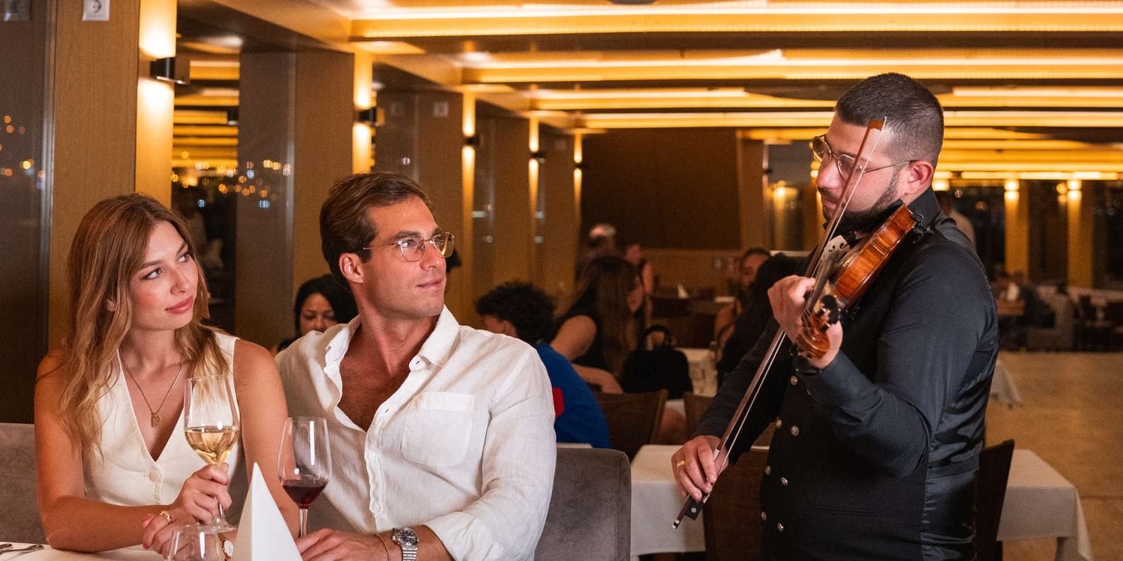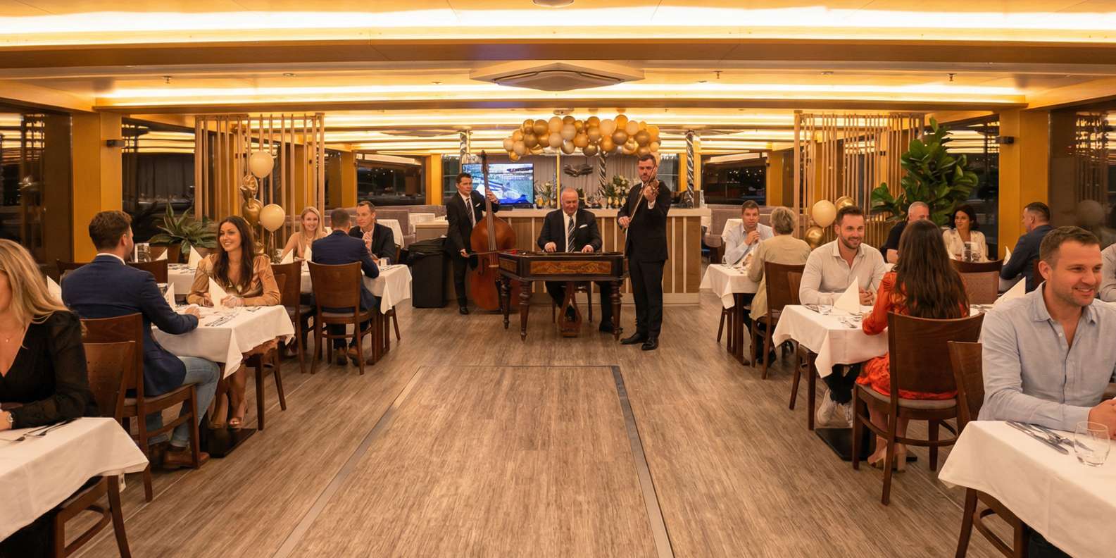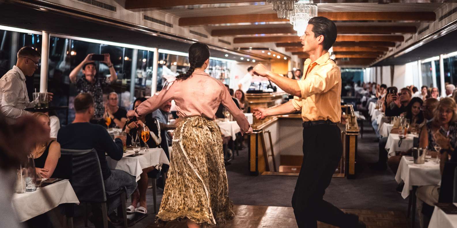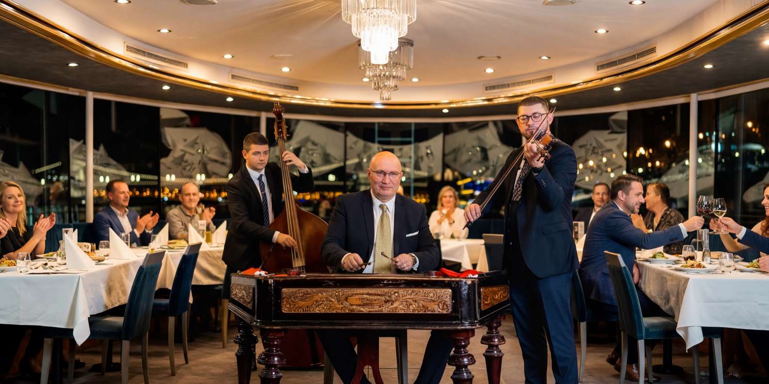 Tauche beim Essen in die authentische ungarische Kultur ein und genieße eine Live-Folklore-Show mit traditioneller Musik, die den Geist Budapests einfängt. Der sanfte Rhythmus der Donau und die Lichter der Stadt schaffen eine wahrhaft romantische Atmosphäre.