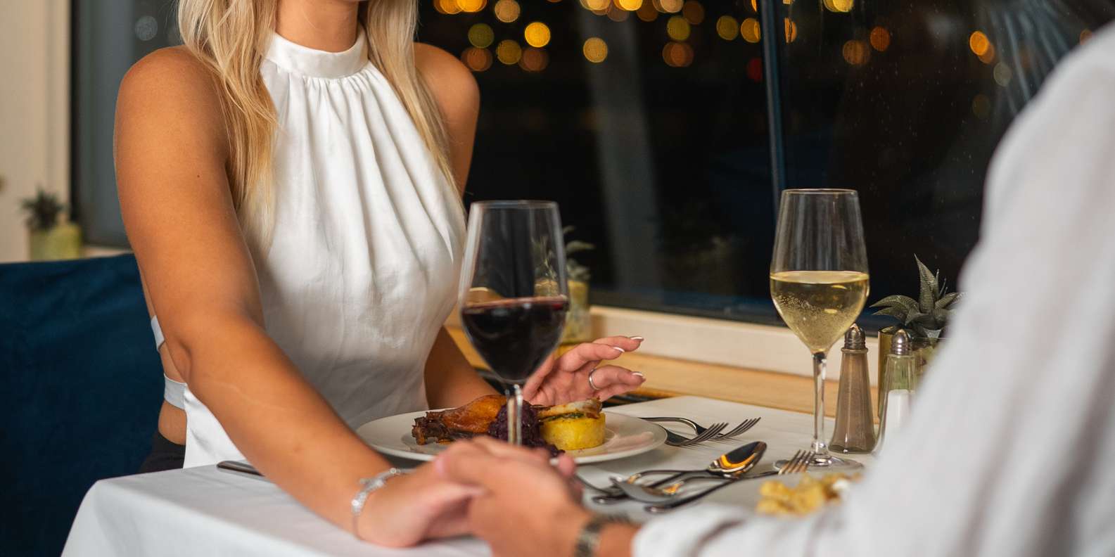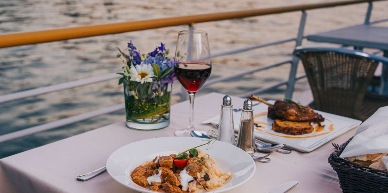 - Stoße mit einem Glas Prosecco auf den Abend an und genieße den romantischen Blick auf den Fluss