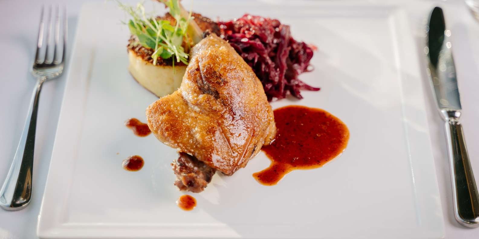 - Genieße ein köstliches 4-Gänge-Menü mit Tischservice und erstklassigen, hausgemachten Aromen