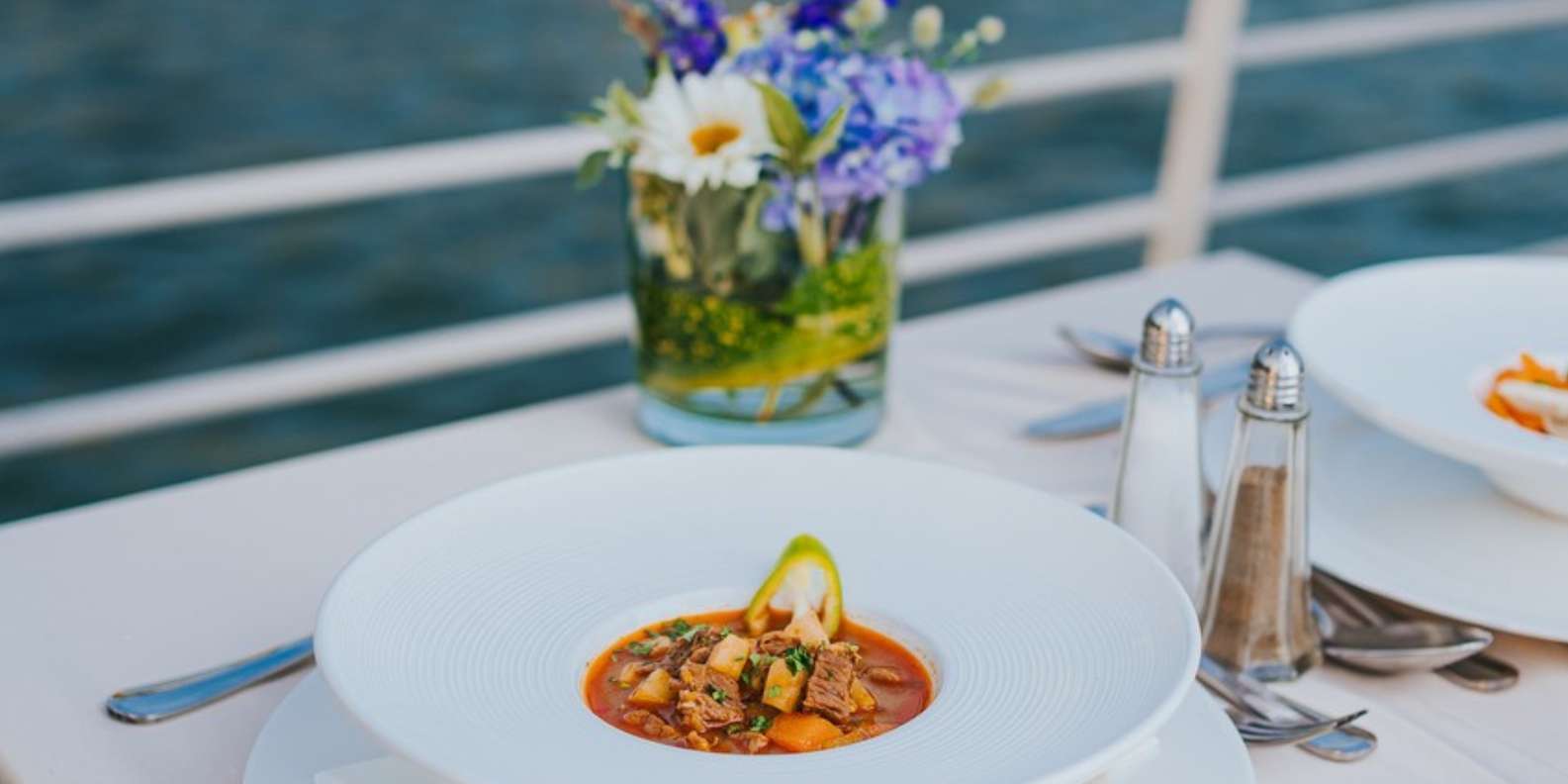 Während das Boot durch das Herz der Stadt gleitet, bewunderst du die wunderschön beleuchteten Sehenswürdigkeiten – vom ungarischen Parlament und der Kettenbrücke bis zum Burgpalast und dem Gellértberg. Genieße ein frisch zubereitetes 4-Gänge-Menü mit regionalen Zutaten und traditionellen ungarischen Aromen, das dir direkt am Tisch serviert wird. Auch vegetarische Gerichte sind verfügbar.