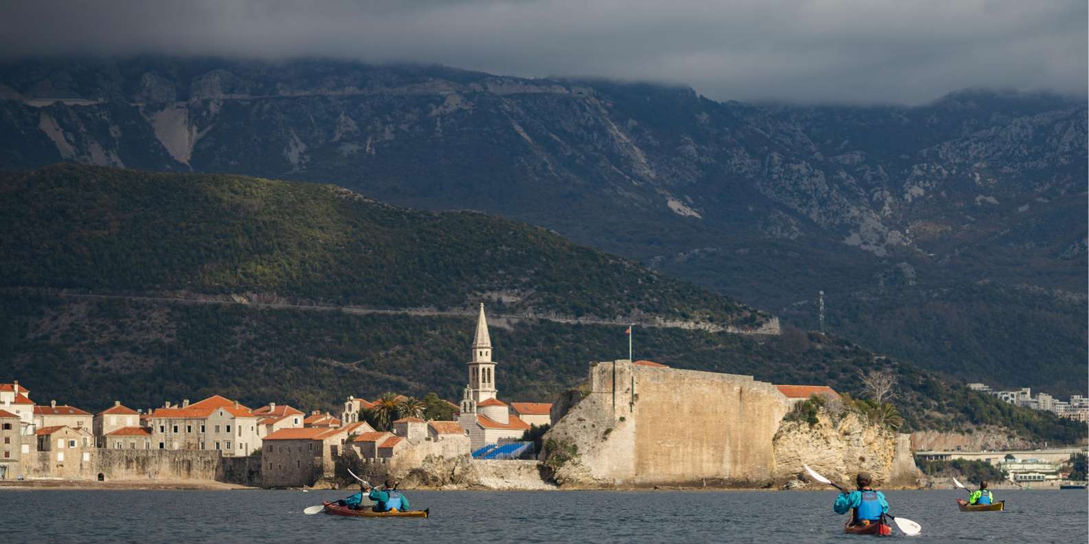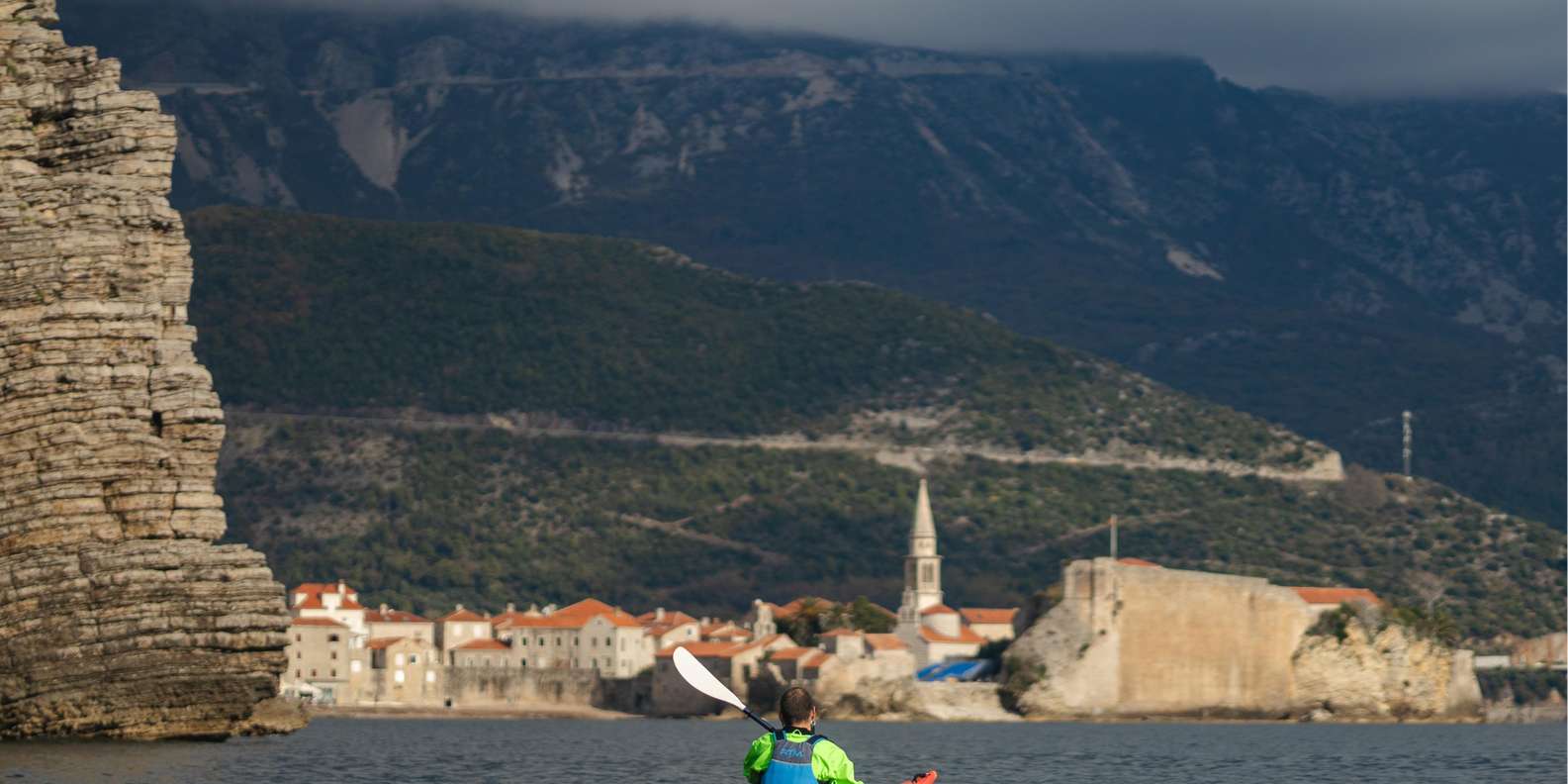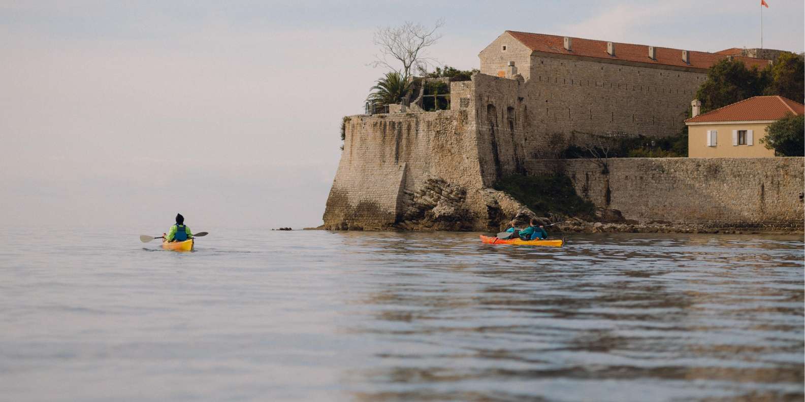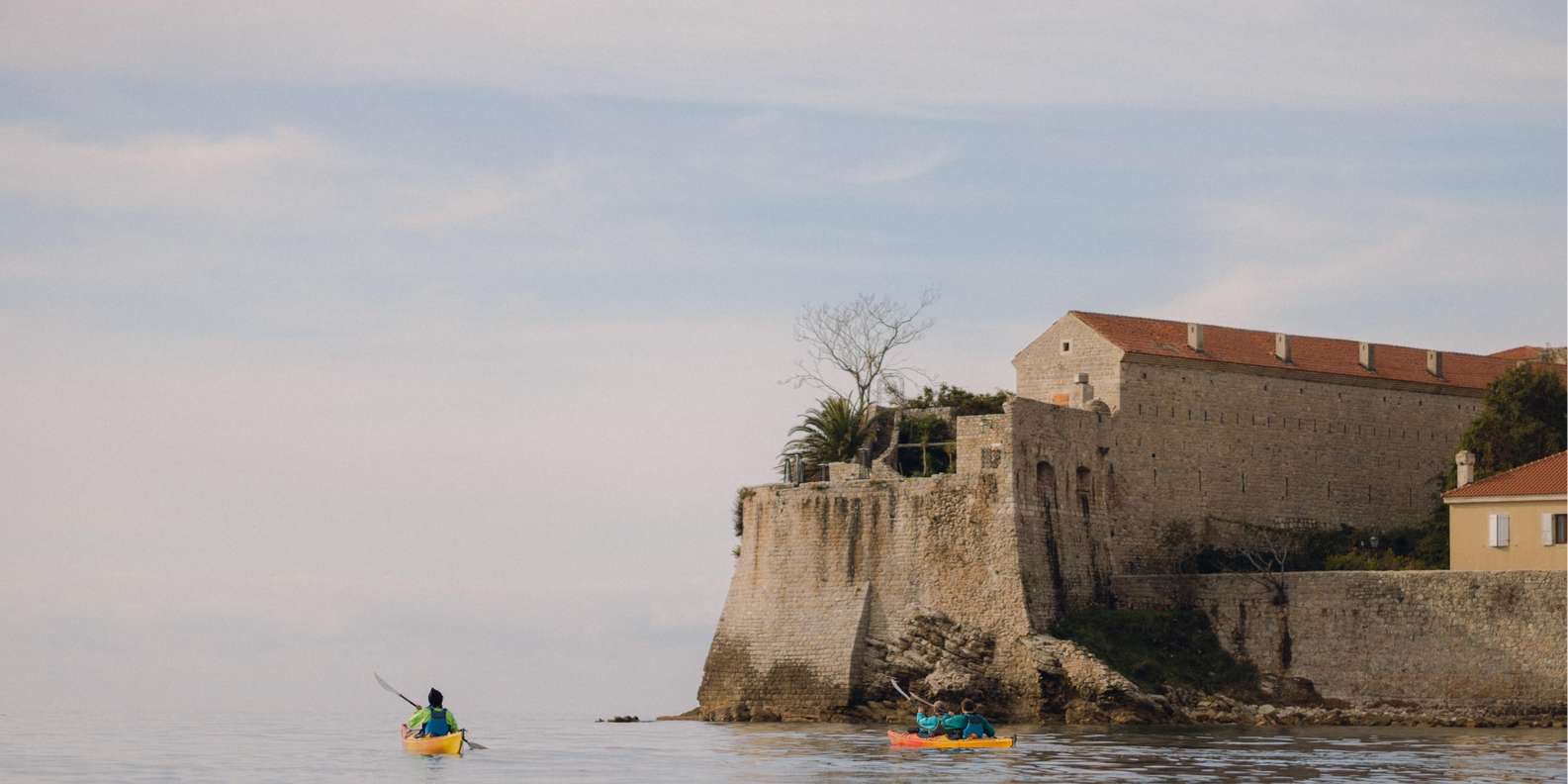 Im Winter fühlt sich die Budva Riviera wie ein anderer Ort an. Der Bootsverkehr ist vorbei, die Luft ist klar und das Meer ist in der Regel ruhig. Dann nehmen wir Seekajaks für eine Mini-Expedition an der Küste: eine halbtägige Rundfahrt von Budva zur Insel St. Nikolaus und zurück.