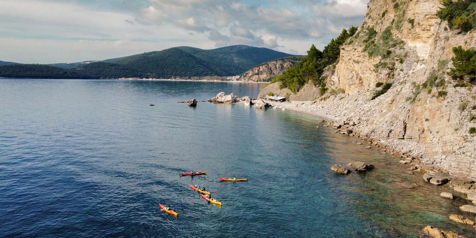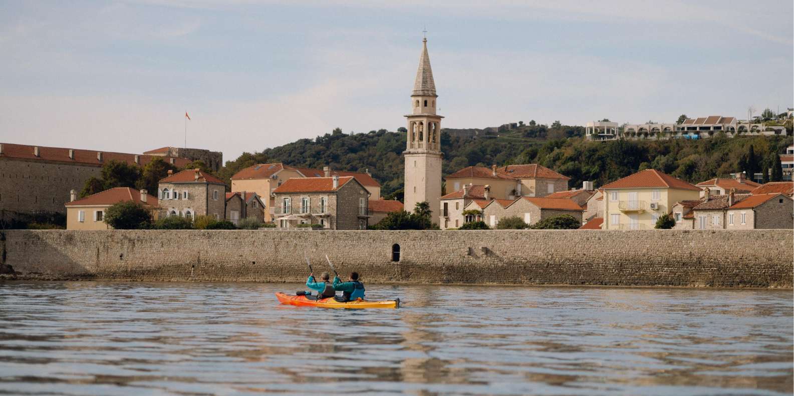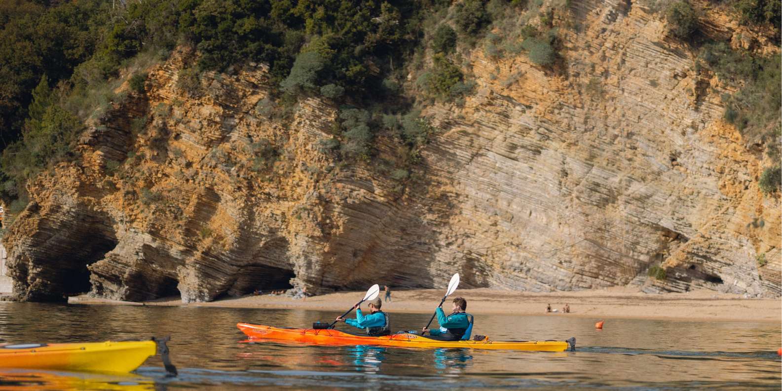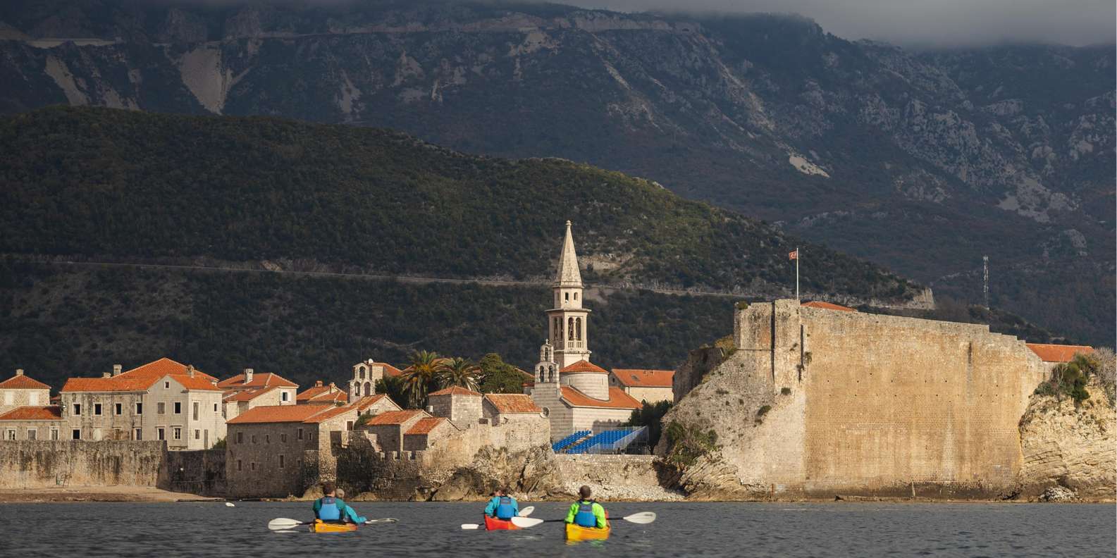 Im Winter fühlt sich die Budva Riviera wie ein anderer Ort an. Der Bootsverkehr ist vorbei, die Luft ist klar und das Meer ist in der Regel ruhig. Dann nehmen wir Seekajaks für eine Mini-Expedition an der Küste: eine halbtägige Rundfahrt von Budva zur Insel St. Nikolaus und zurück.