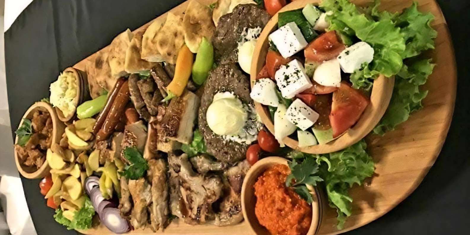 Hauptgericht: traditionelle Kalbs-Peka mit Kartoffeln und gebratenem Gemüse
