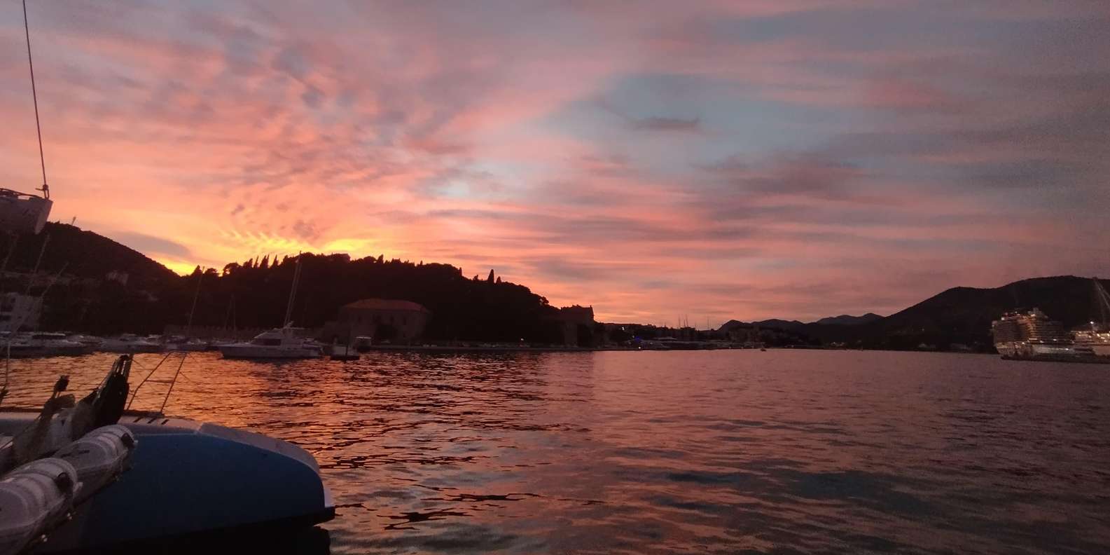 Stich vom legendären Hafen der Altstadt von Dubrovnik aus in See und gleite auf einer Katamaranfahrt an den Stadtmauern und der üppigen Insel Lokrum vorbei. Genieße ein Glas Sekt, streck dich auf gemütlichen Kissen und Sitzsäcken aus und genieße die schillernden Farben des Sonnenuntergangs.
