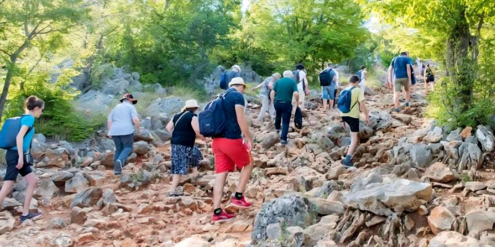 Der Aufstieg zum Gipfel dauert je nach Tempo in der Regel 30–45 Minuten und führt über unebenes, felsiges Gelände. Wenn du es ruhiger angehen lassen möchtest, kannst du in der Nähe der Kirche verweilen, um in Ruhe nachzudenken, dich auszuruhen oder die Umgebung auf eigene Faust zu erkunden.