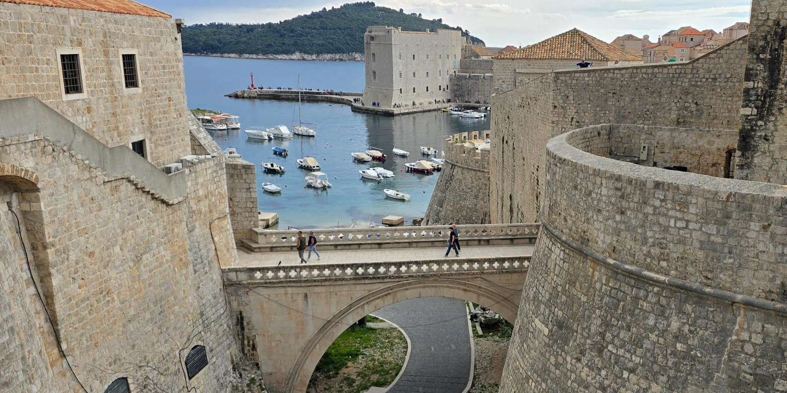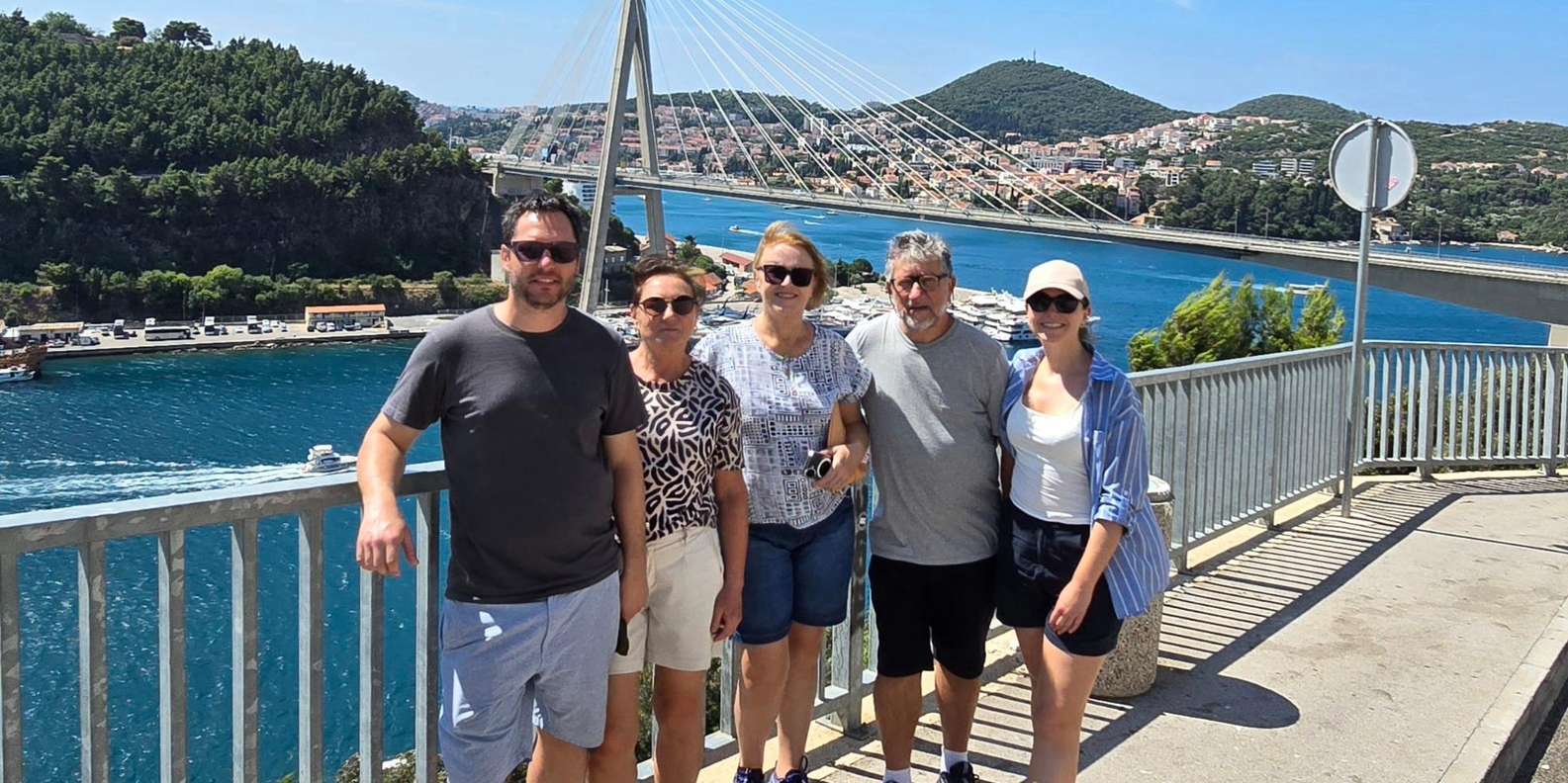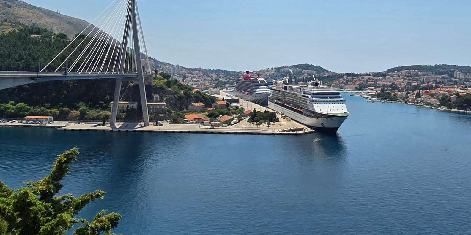An der Dr.-Franjo-Tuđman-Brücke genießt du einen beeindruckenden Blick auf den modernen Teil der Stadt, den gewundenen Fluss Ombla, den Kreuzfahrthafen und die nahe gelegenen Elaphiti-Inseln.