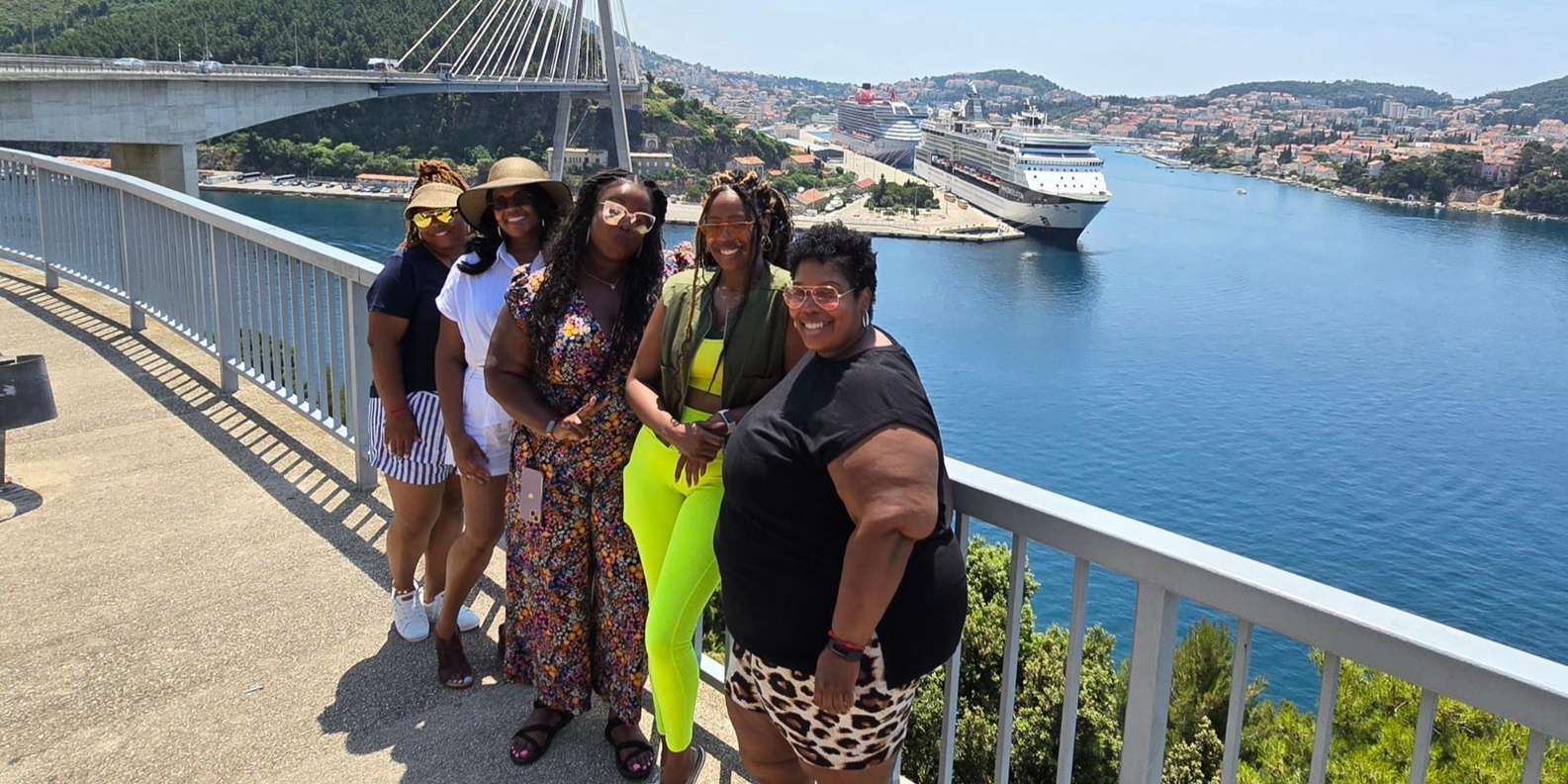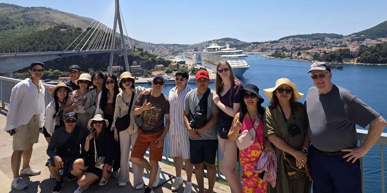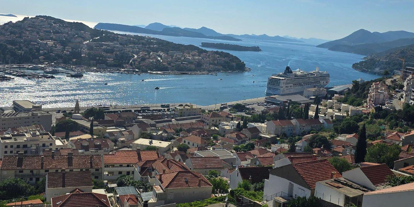 An der Dr.-Franjo-Tuđman-Brücke genießt du einen beeindruckenden Blick auf den modernen Teil der Stadt, den gewundenen Fluss Ombla, den Kreuzfahrthafen und die nahe gelegenen Elaphiti-Inseln.
