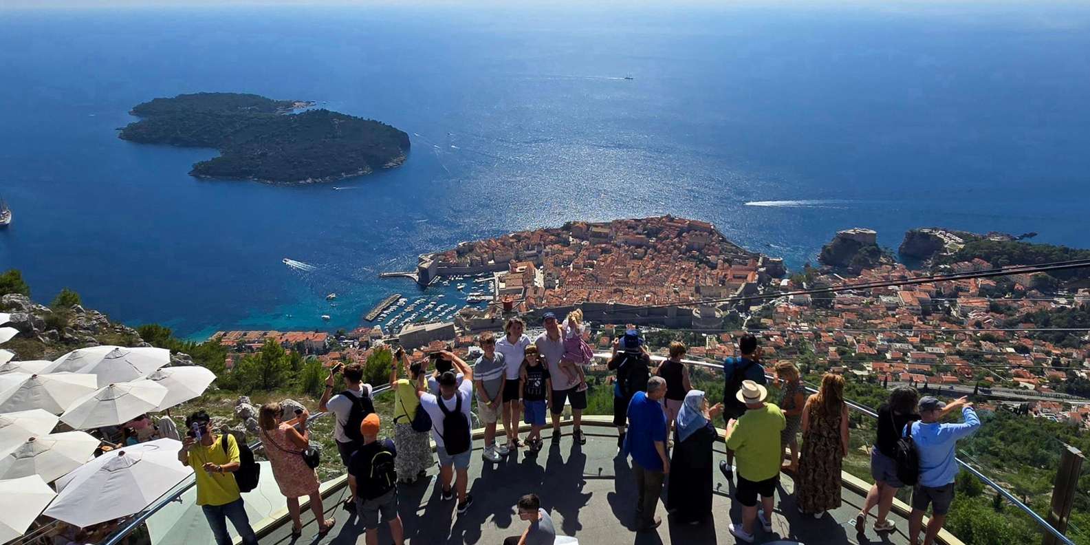 Wenn wir den Berg Srđ hinauffahren, erreichen wir den berühmten Aussichtspunkt in der Nähe der oberen Seilbahnstation. Von der Terrasse aus genießt du einen herrlichen Blick auf die Altstadt, die neueren Teile von Dubrovnik, die Insel Lokrum, die Adria und die Elaphiti-Inseln. Oben findest du auch die historische kaiserliche Festung und das bekannte Panorama-Restaurant.