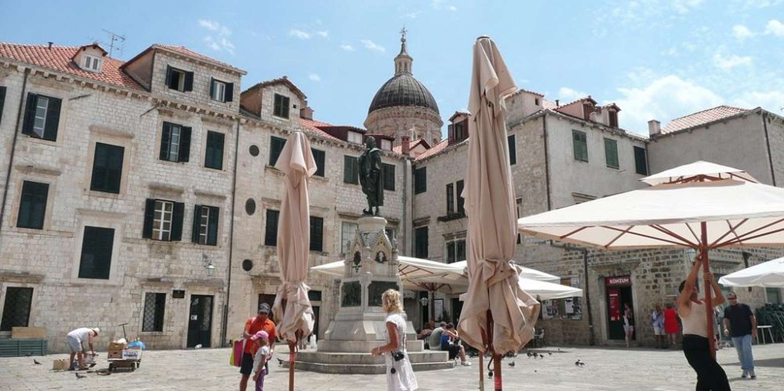 Erfahren Sie mit Hilfe einer Karte, was die Stadt und ihre Bewohner zwischen 1991 und 1995 erleiden mussten und wie viele Zerstörungen und Beschädigungen bis heute vom letzten Krieg beseitigt wurden. Hören Sie die Geschichte des Aufbaus von Dubrovnik und von den Zerstörungen im Großen Erdbeben 1667, nach dem die Stadt im barocken Stil wieder aufgebaut wurde.