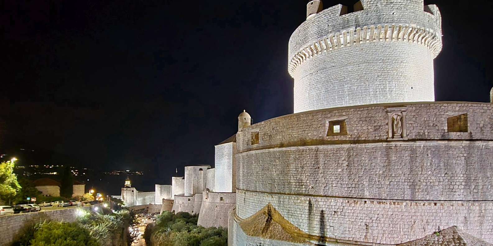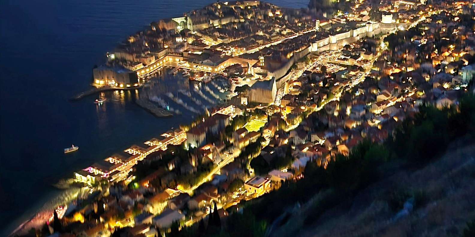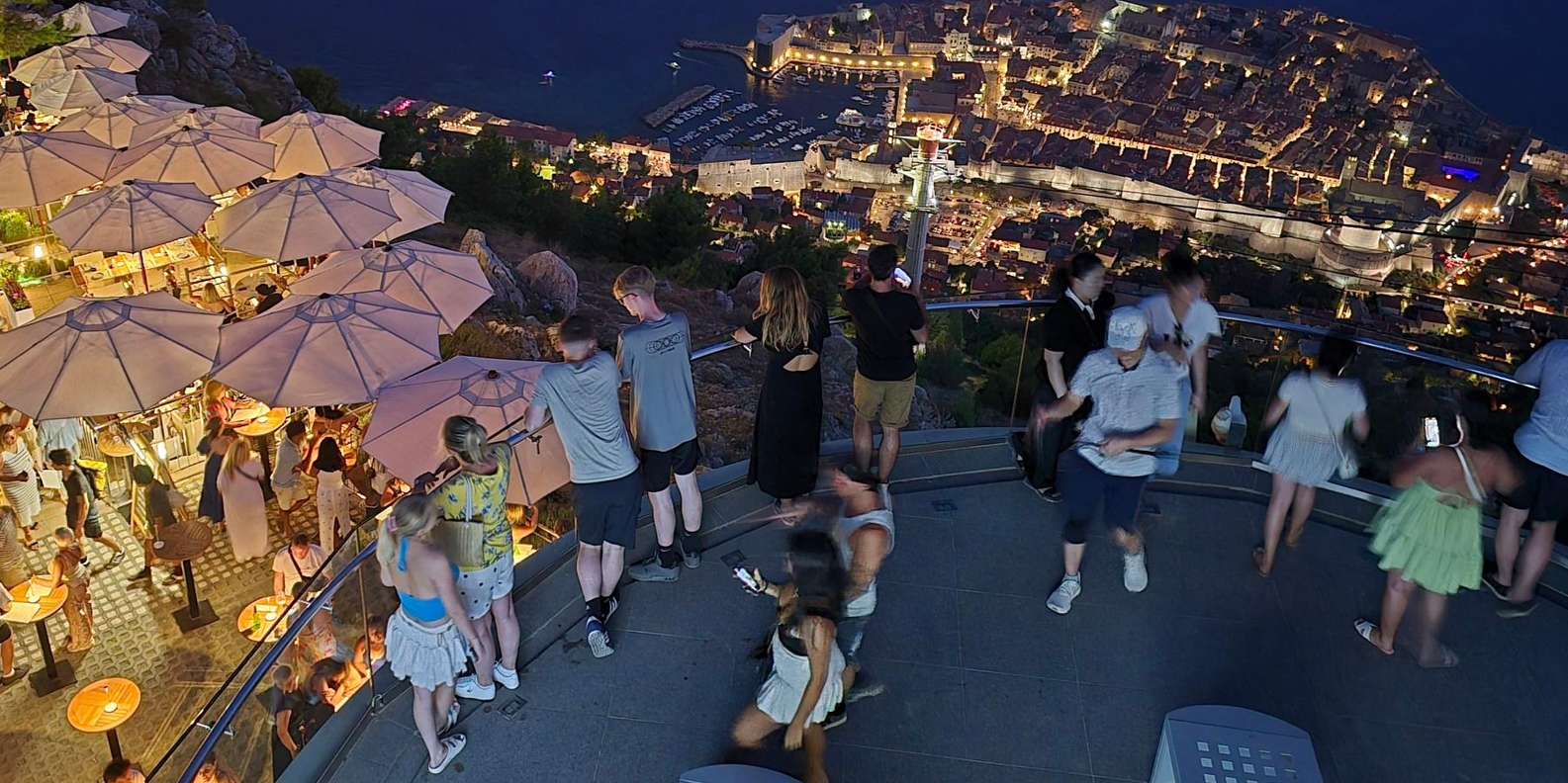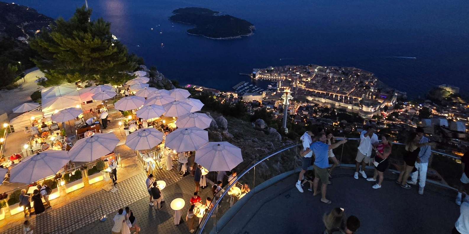 Genieße auf 405 Metern über dem Meeresspiegel ein atemberaubendes nächtliches Panorama von Dubrovnik, einschließlich der Altstadt, Lokrum, der Elaphiti-Inseln, Fort Imperial, Cavtat und der Berge von Bosnien und Herzegowina.