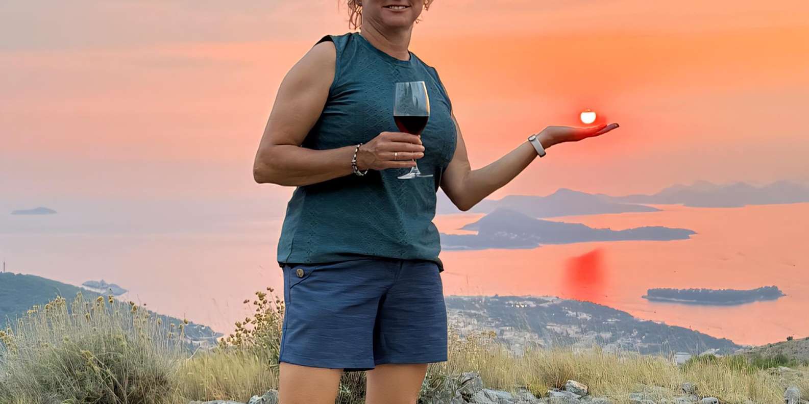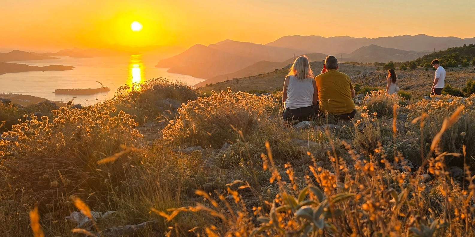 Erlebe den magischen Sonnenuntergang von einem der schönsten versteckten Orte Dubrovniks, wo goldene Farbtöne die Elaphiti-Inseln erhellen.