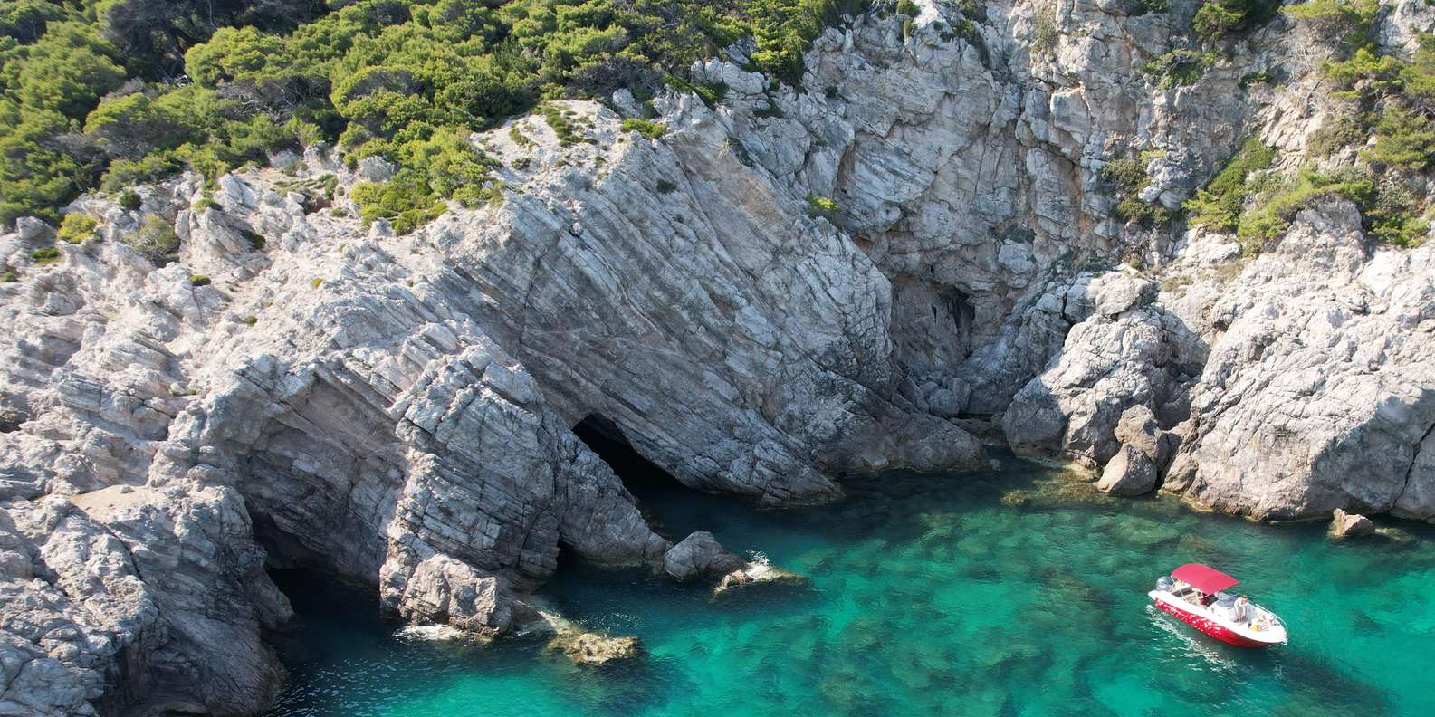 Stich mit einem Premium-Schnellboot in See, das für Luxus und Entspannung optimiert ist und Gruppen von bis zu 11 Gästen beherbergt. Fahre zu versteckten türkisfarbenen Lagunen, unberührten smaragdgrünen Buchten und atemberaubenden Meereshöhlen, die nur den Einheimischen bekannt sind.