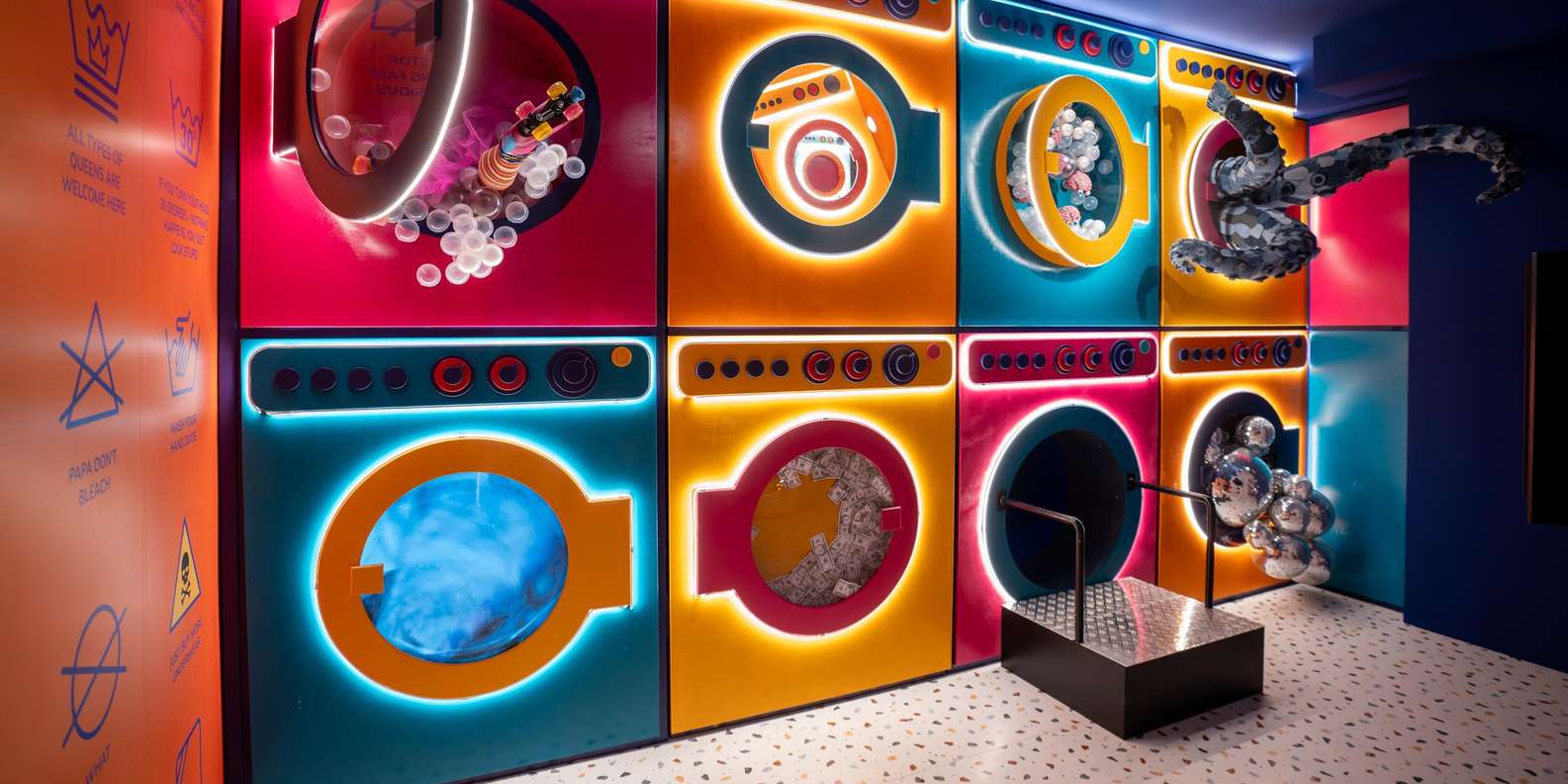 - Genieße einen spielerischen, interaktiven Raum, der Humor, Kunst und Technologie verbindet