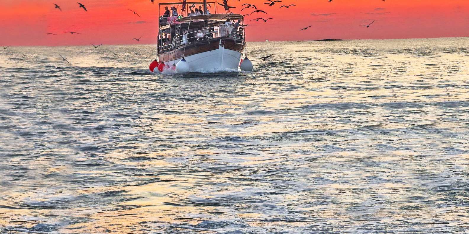 Umag: Bootsfahrt bei Sonnenuntergang mit Delfinbeobachtung