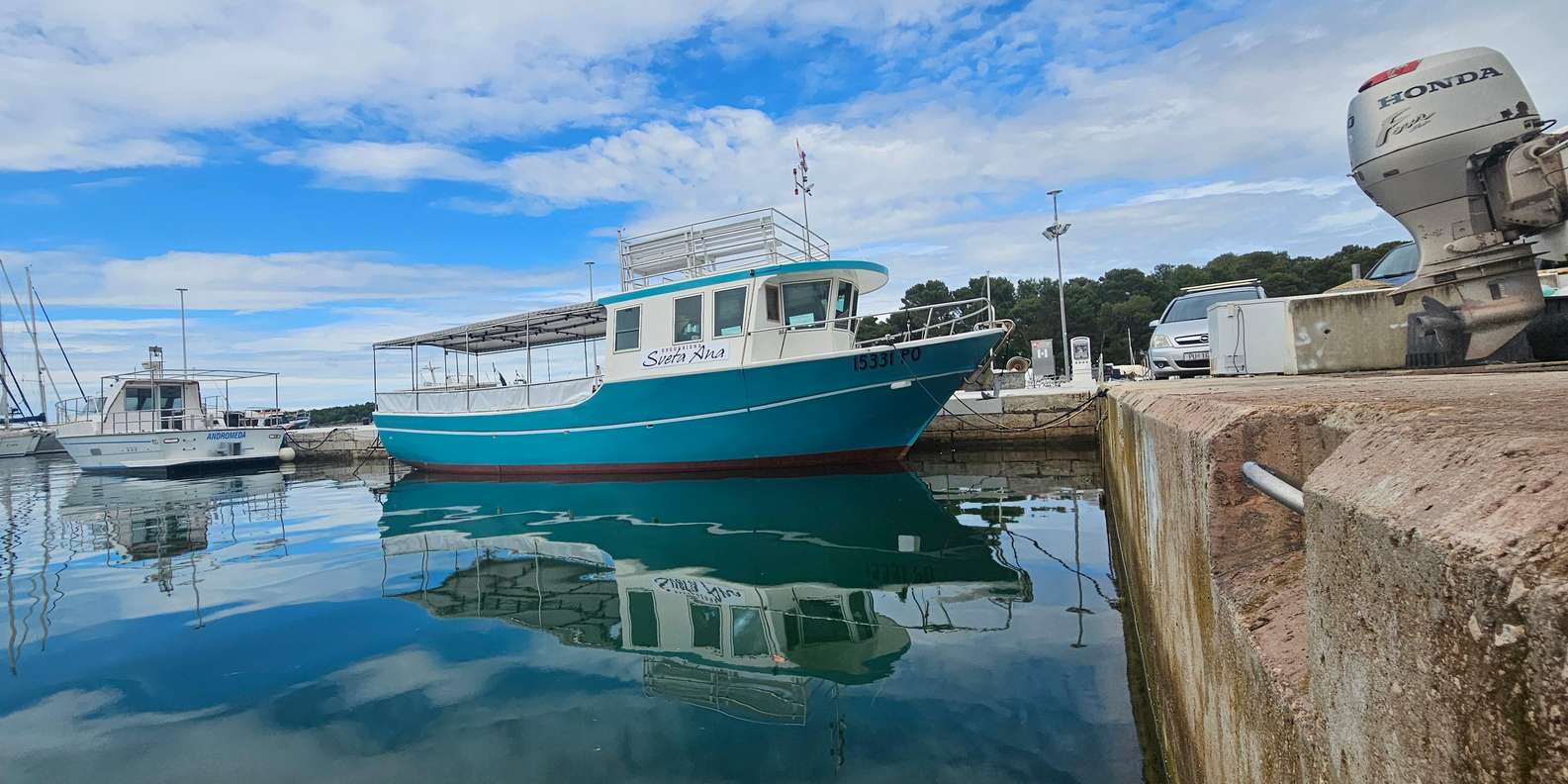 Stich vom Jachthafen Funtana zu einer komfortablen und entspannten Bootsfahrt aus, die Sightseeing und Spaß auf dem Meer verbindet. Deine dreistündige Reise beginnt mit einer Panoramafahrt entlang der
