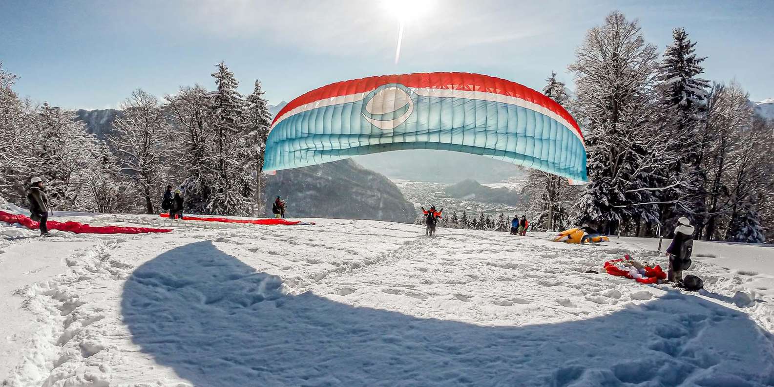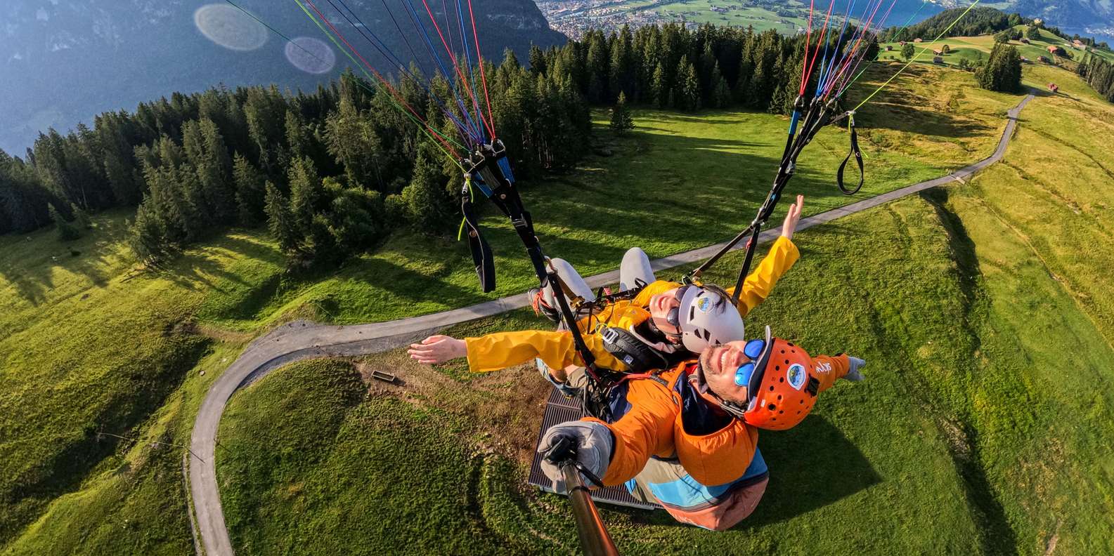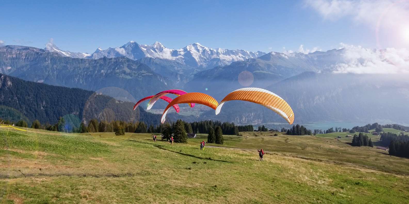 Nach einer malerischen Fahrt nach Beatenberg hebst du sanft von einem grasbewachsene