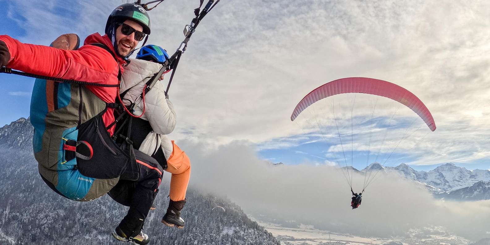 Entfliehe dem Alltag mit einem Tandem-Paragliding-Erlebnis über der atemberaubenden Alpenlandschaft von Interlaken