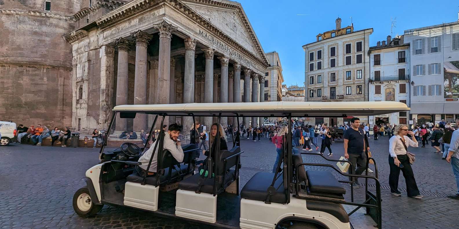 Erkunde Rom auf einer privaten Tour im Golfwagen. Genieße den freien Blick unter freiem Himmel, während du an Sehenswürdigkeiten wie dem Kolosseum, der Spanischen Treppe, dem Petersdom und der Piazza Navona vorbeifährst. Du kommst in Bereiche, die mit einem normalen Fahrzeug nicht erreichbar sind.