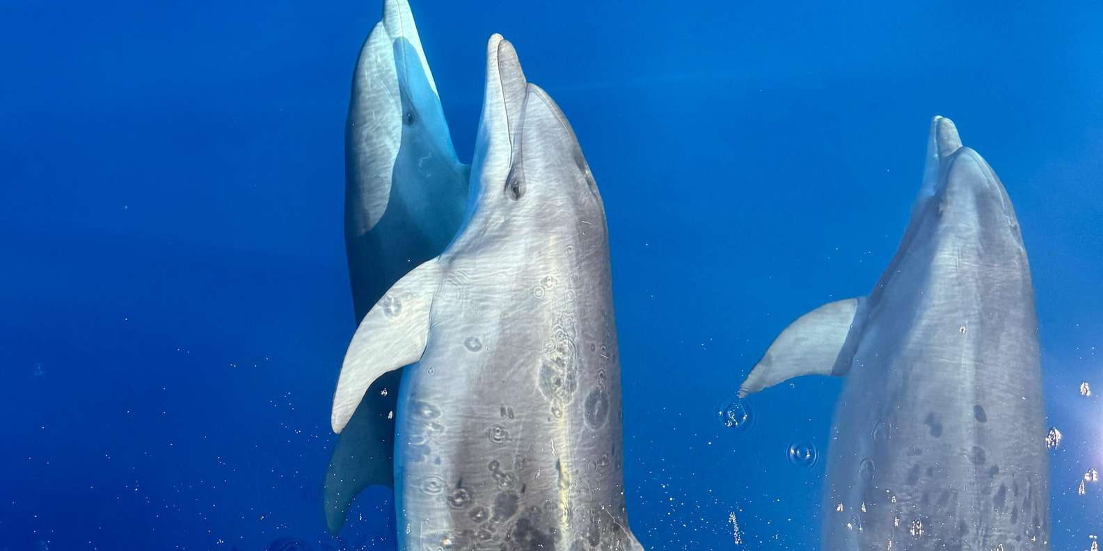 - Schau dir an, wie verspielte Tümmler neben dem Boot schwimmen.