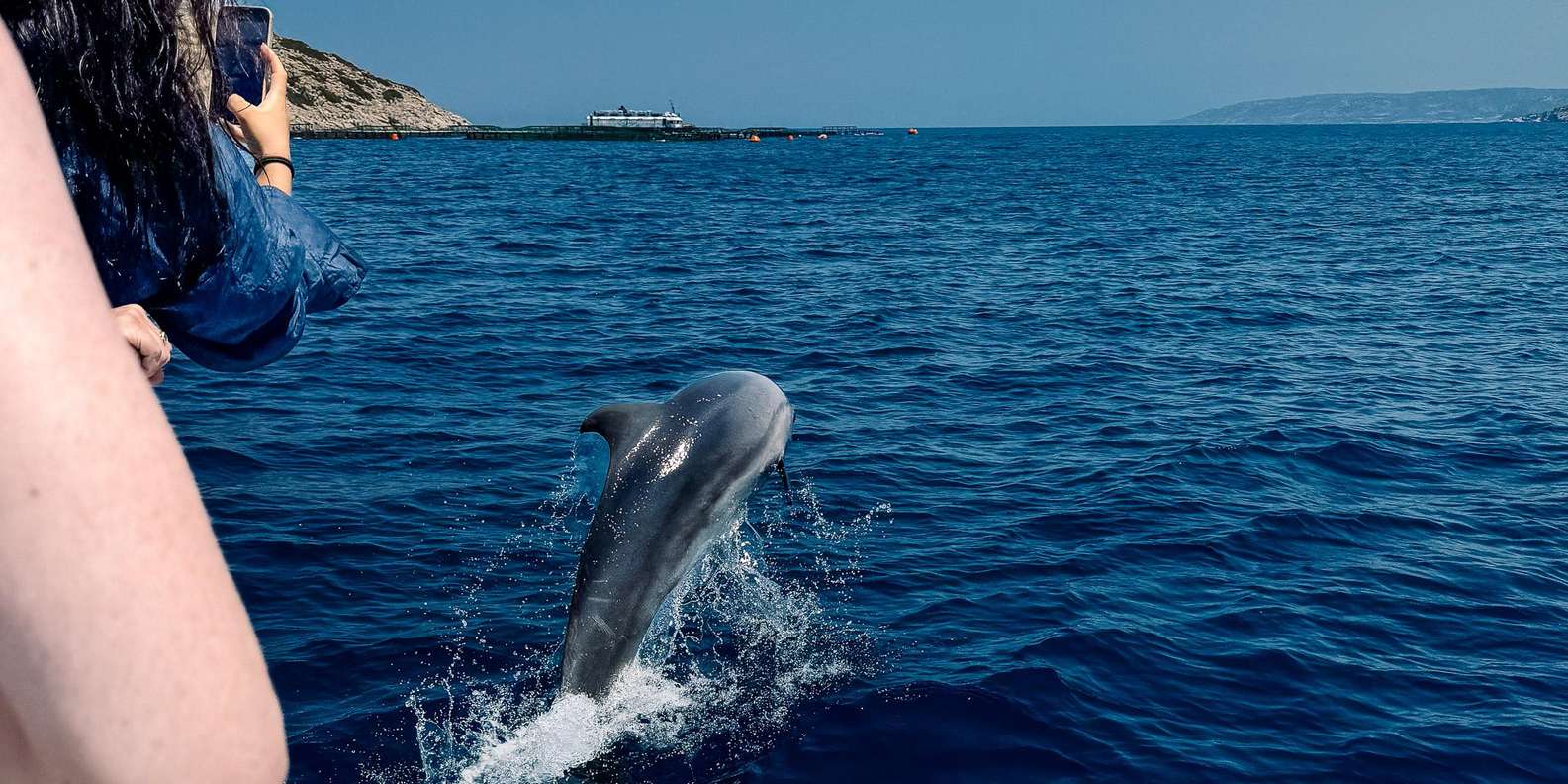 Bevor wir zum Hafen zurückfahren, passieren wir noch einmal die Insel Makri – das ist deine letzte Chance, Delfine in ihrem natürlichen Lebensraum zu sehen.