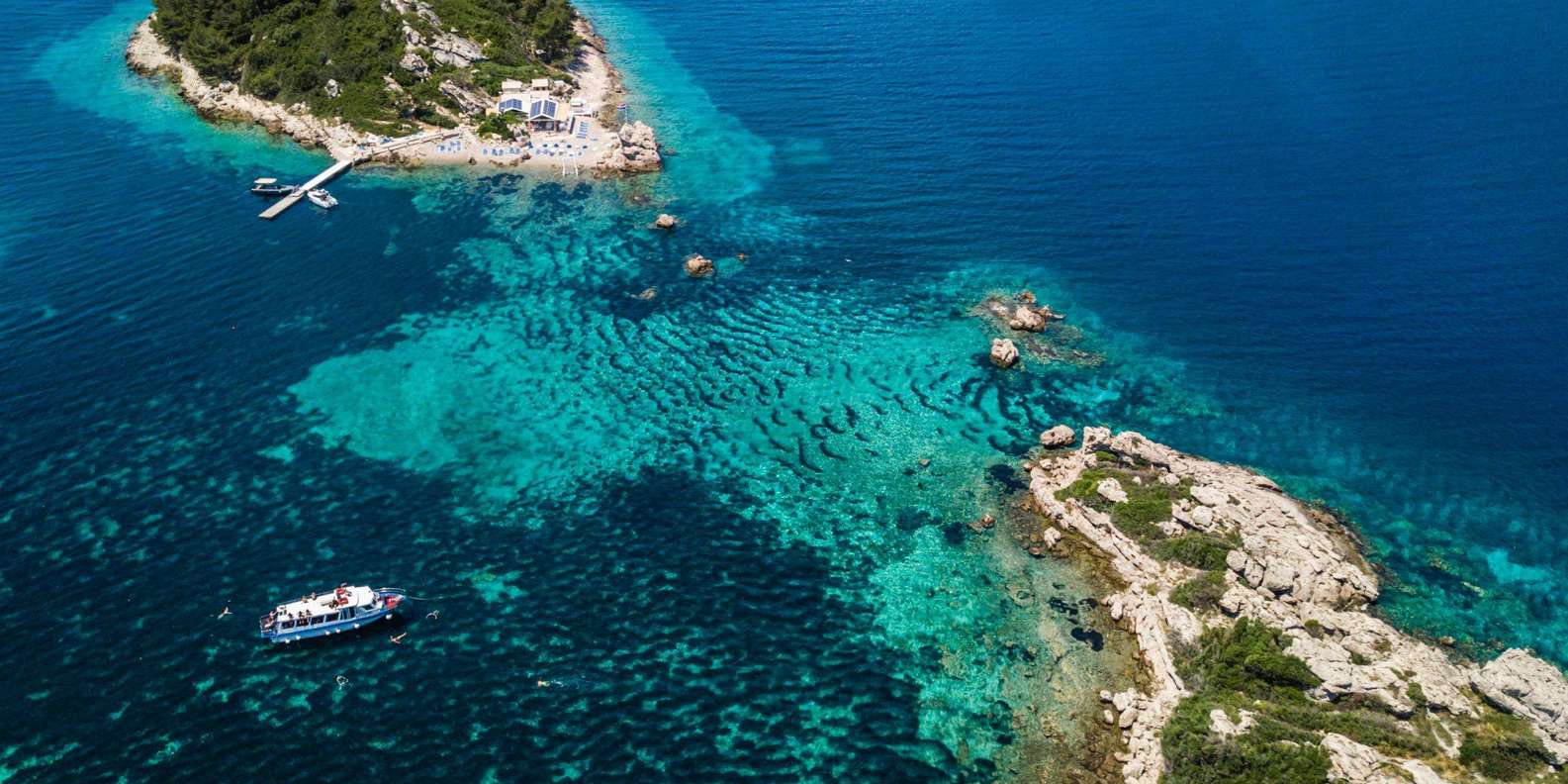 Auf unserer Bootstour zur Insel Picknick Tour kannst du schwimmen, schnorcheln und die malerischen Inseln des Korcula-Archipels erkunden. Die Tour beginnt mit einer entspannten Fahrt durch den Pelješac-Kanal, bei der du an einem Schiffswrack zum Schnorcheln anhältst, und geht weiter zur Insel Vrnik.