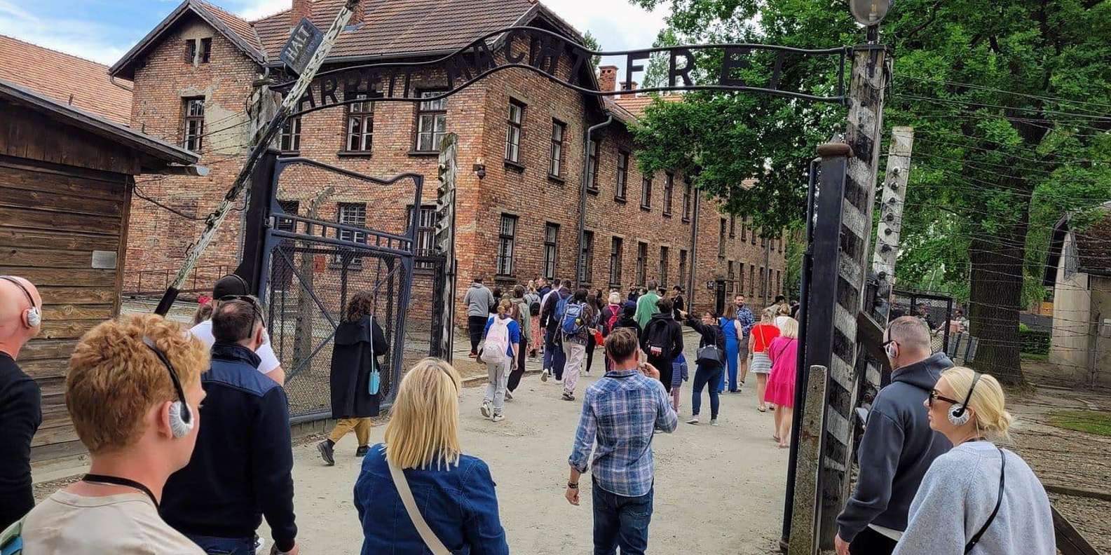 - Schau dir das Haupttor von Auschwitz an, „Arbeit macht frei“