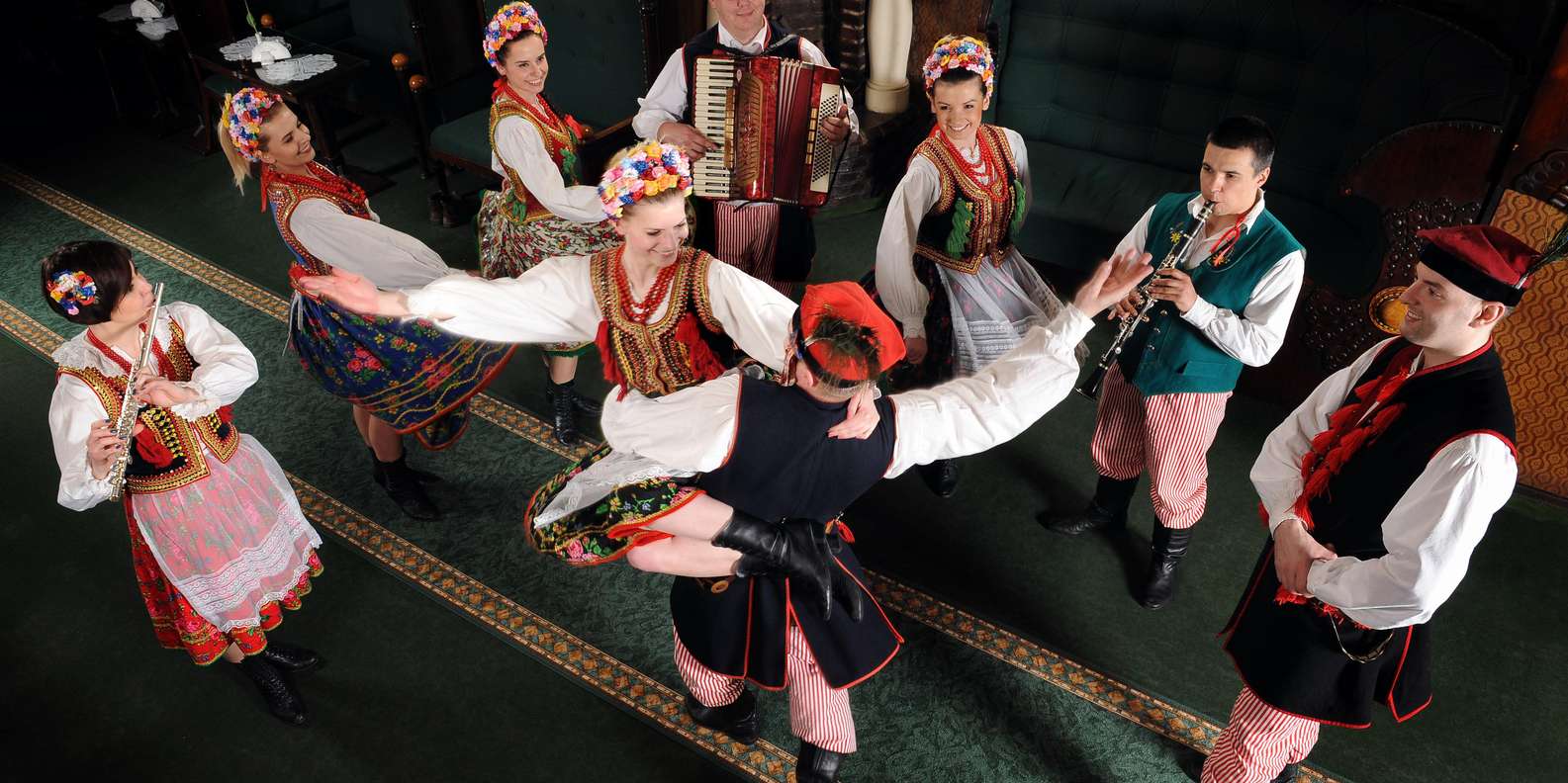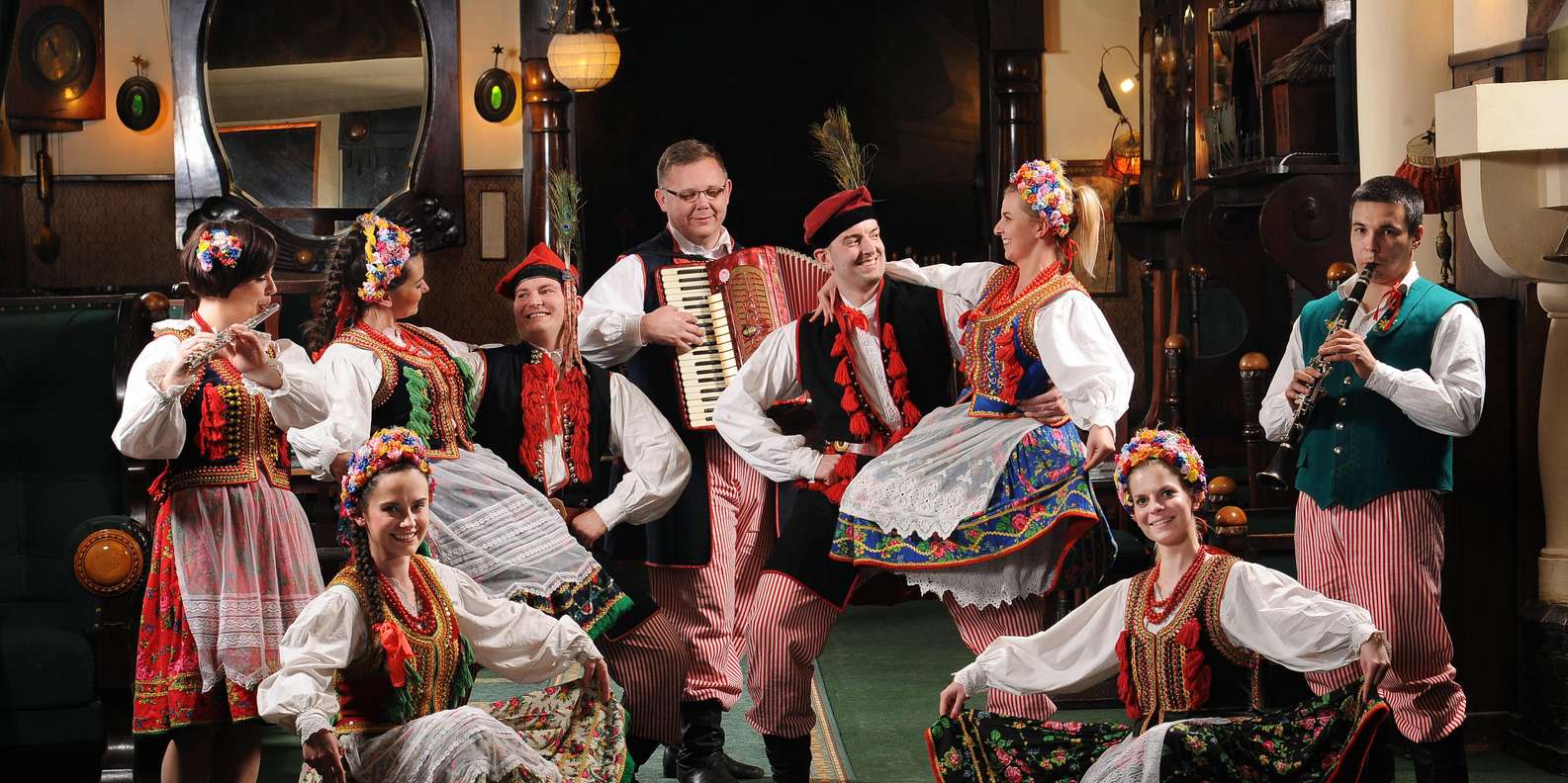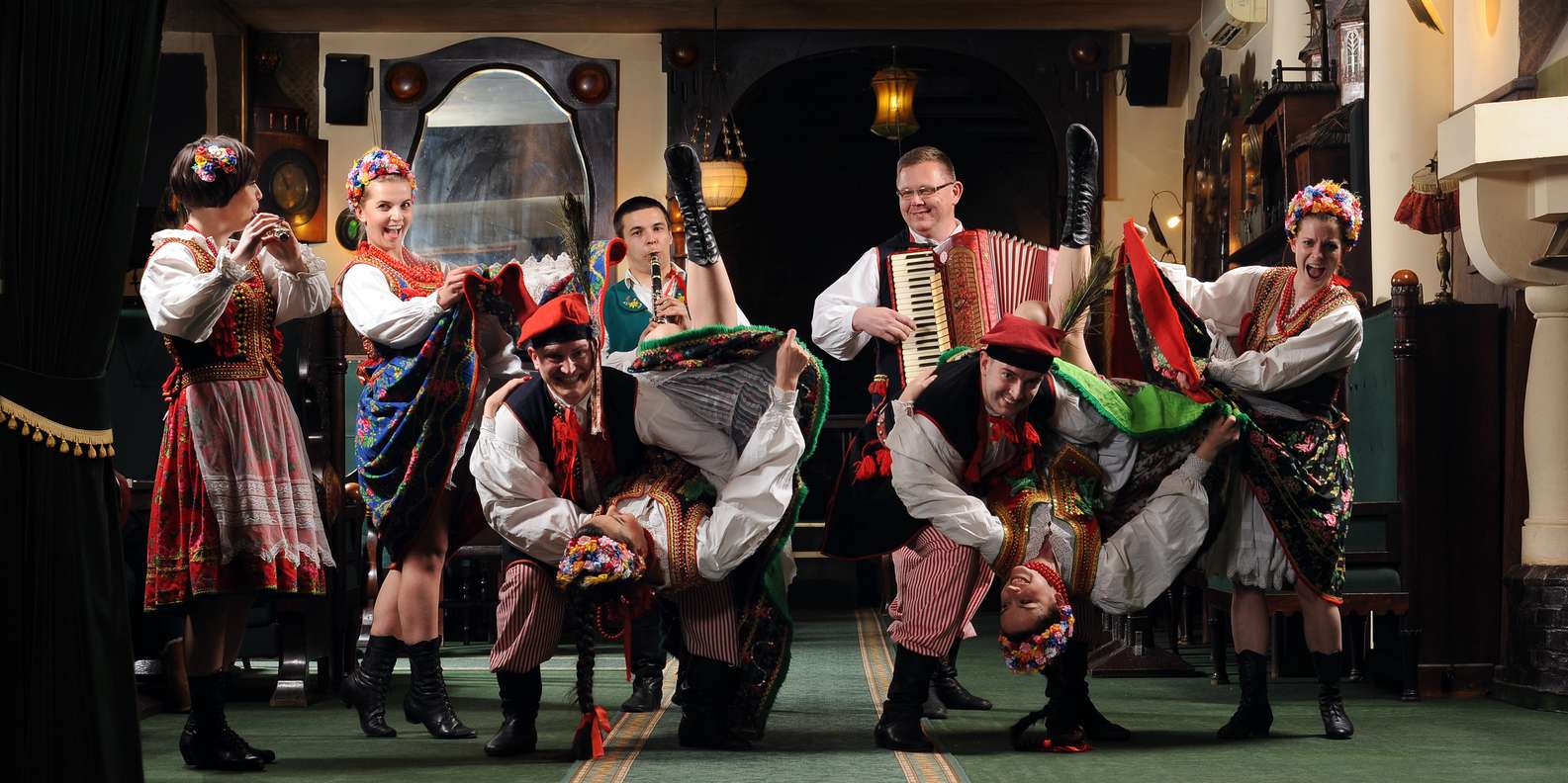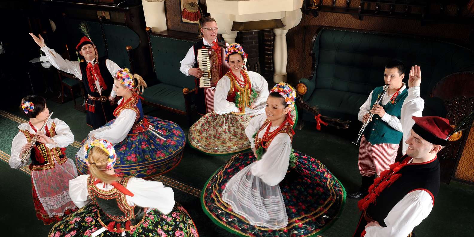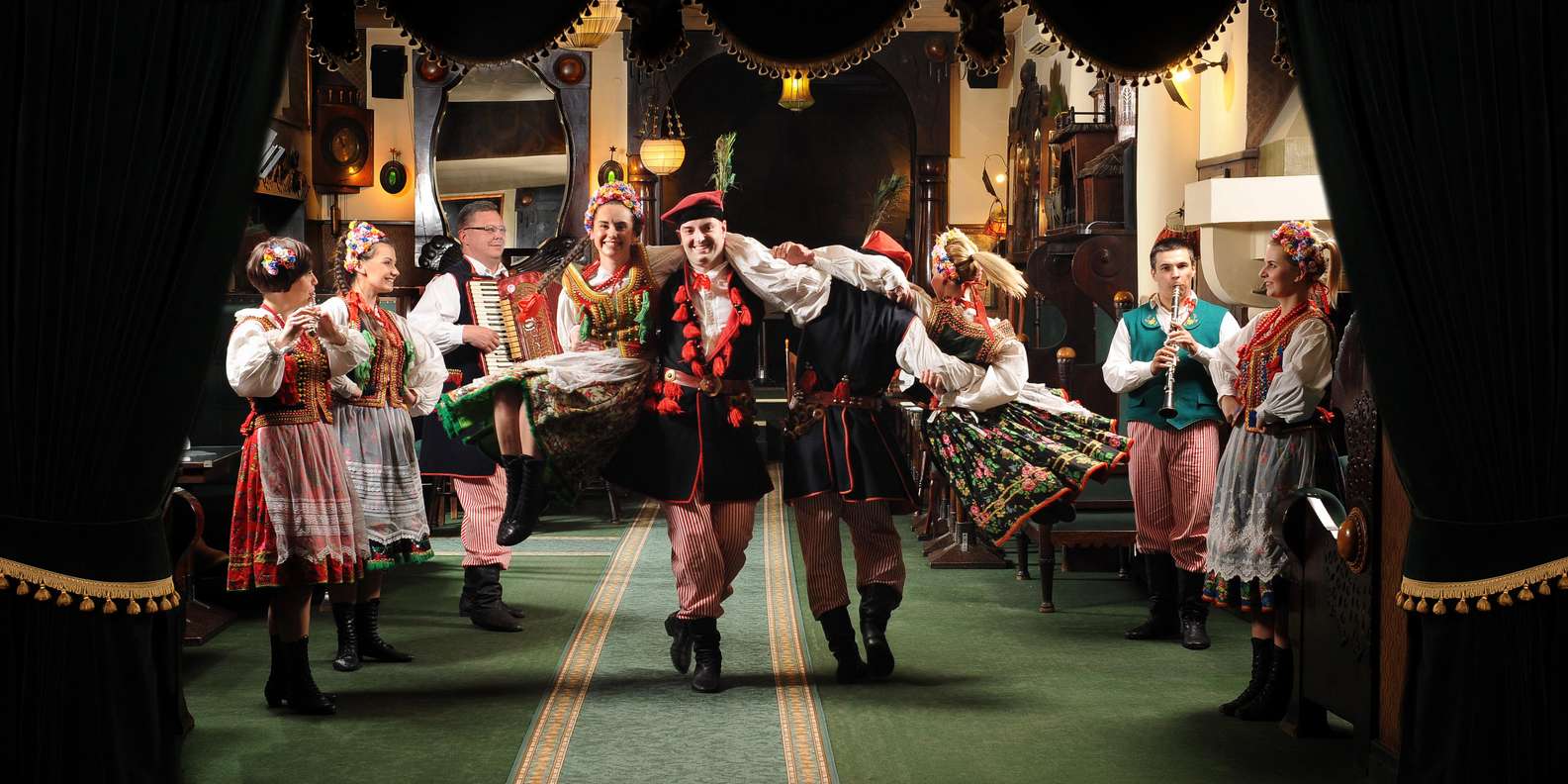 Entspanne dich, während das Konzert und die Tanzvorführung beginnen. Erfahre mehr über polnische Traditionen und Folklore, während du zusiehst, wie Darsteller in regionalen Trachten ihre Geschichten durch Tanz und Volksmusik erzählen.