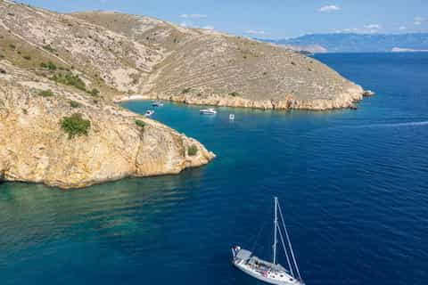 Die Tour beginnt am Hafen von Krk, wo die Crew dich mit einem Getränk und einer kurzen Einführung in die Strecke begrüßt. Die Kreuzfahrt beginnt mit einem Panorama-Ausblick auf die Küste von Krk, bevo