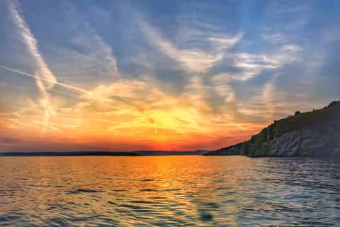 Krk: Bootstour bei Sonnenuntergang mit Wein, hohe Chance auf Delfine