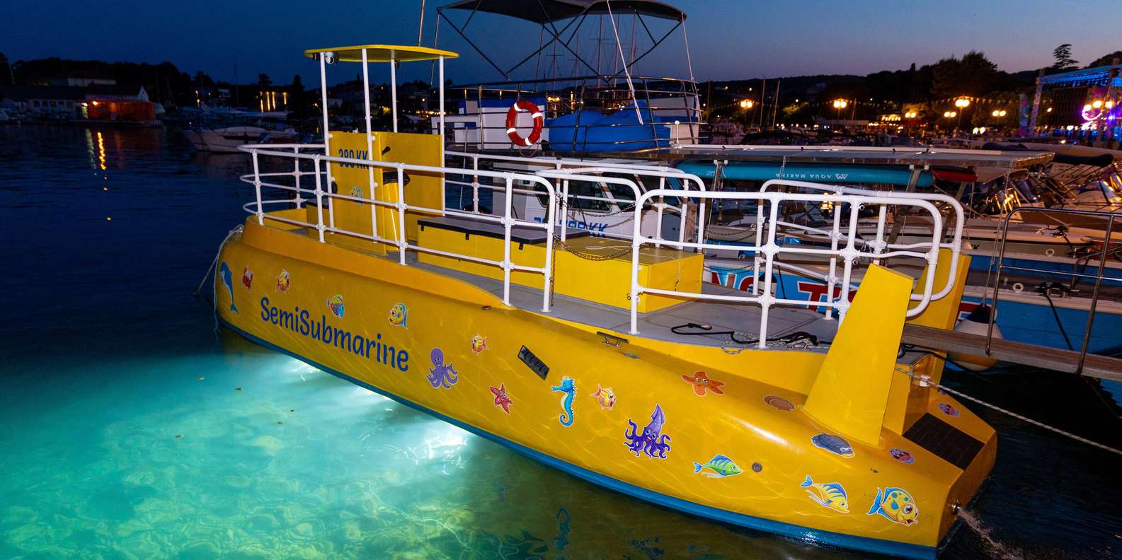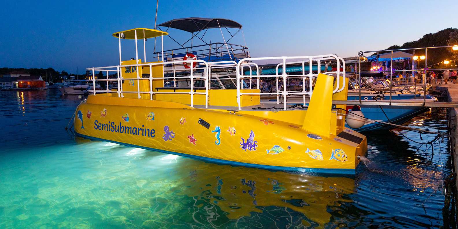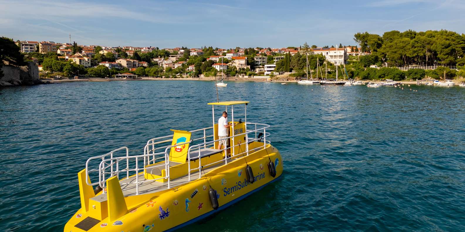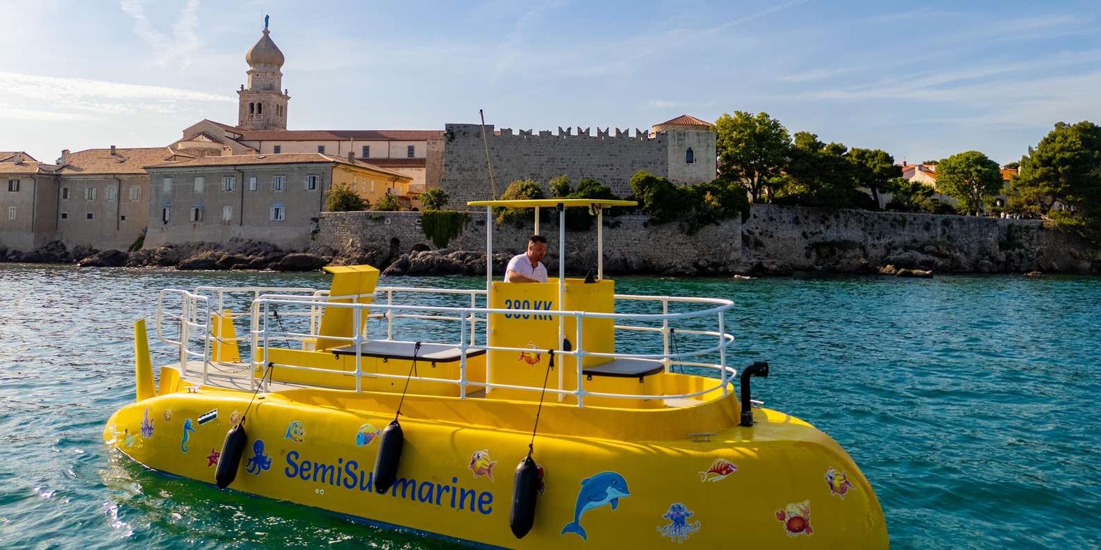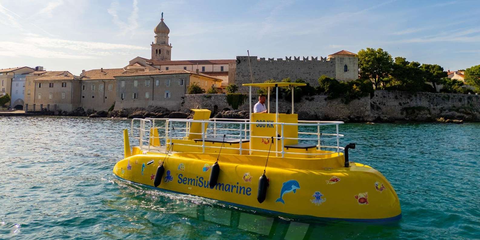 Entdecke die Adria auf einer Tour mit dem Halb-U-Boot ab Krk. Beobachte die Unterwasserwelt durch die Fenster der Unterwasserkabine und genieße den Blick auf die Stadt vom Deck aus!